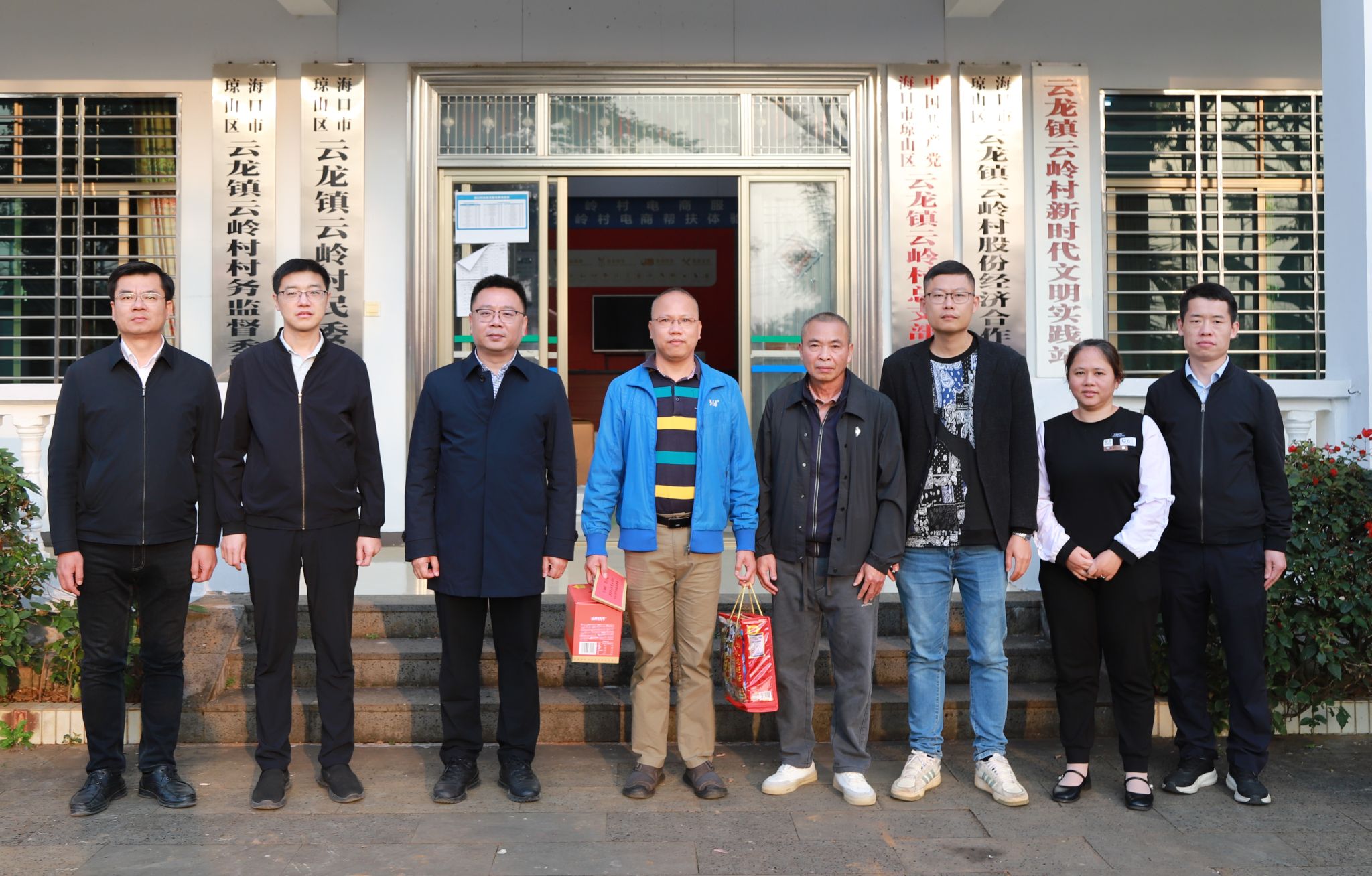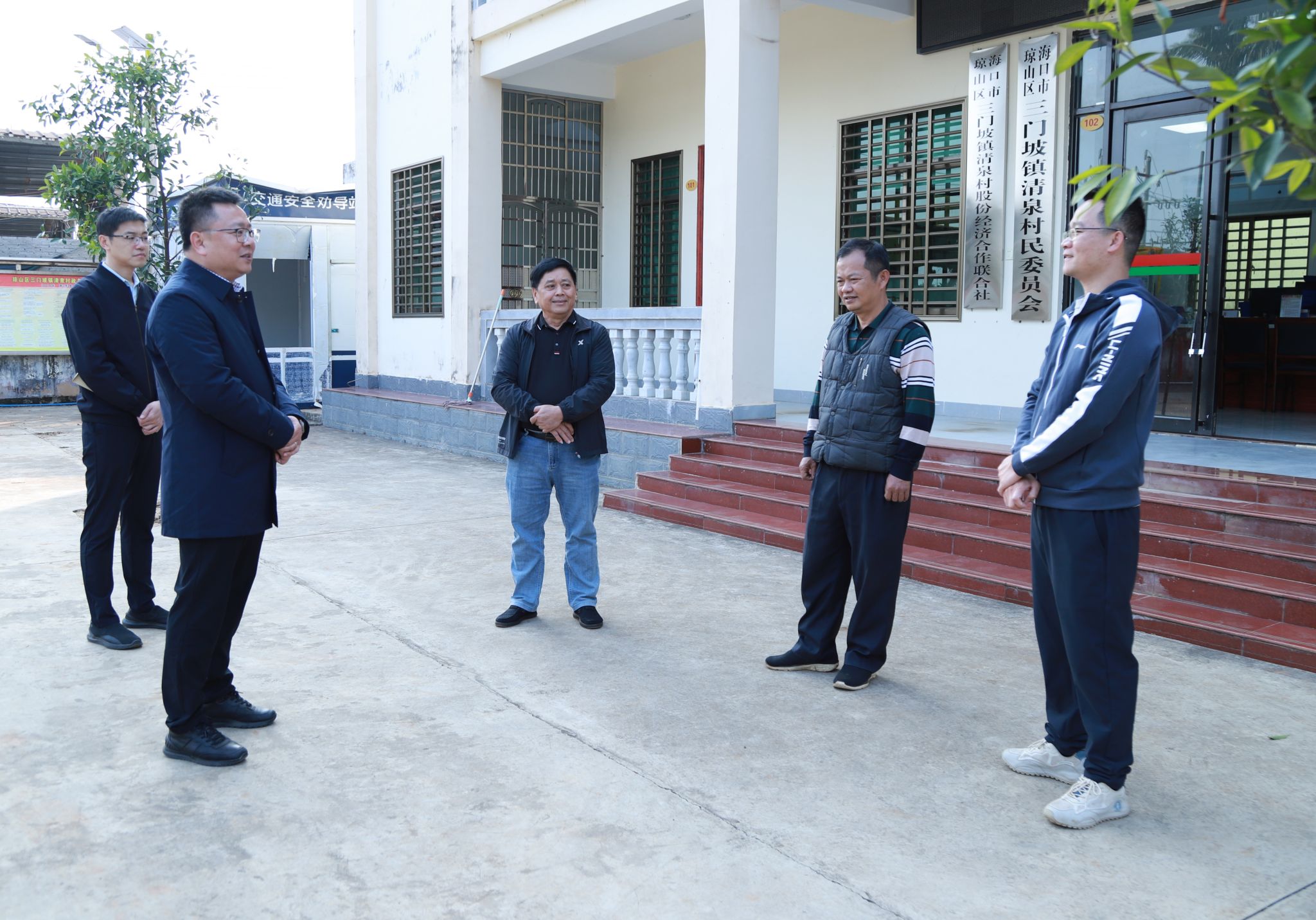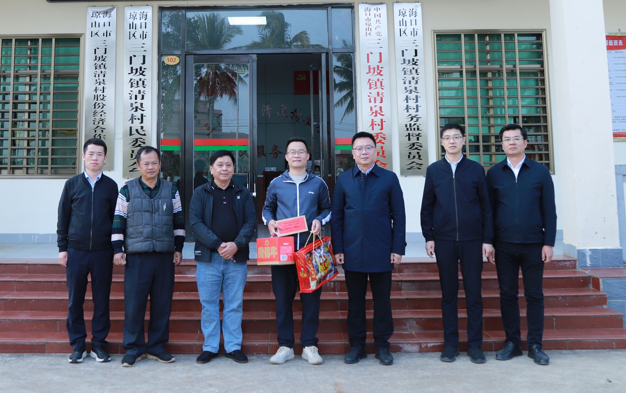 2025年1月17日,kaiyun登录中国入口登录党委书记王华来到昌江县石碌镇水头村委会,海口市三门坡镇清泉村委会、红旗镇红旗村委会、云龙镇云岭村委会、三江镇茄苪村委会,看望慰问学校驻乡村振兴工作队干部王师庆、郑磊、黄银亮、文有科、赵会达,送去党委的关爱温暖和春节的问候祝福。学校党委委员田小林、方天海参加慰问活动。