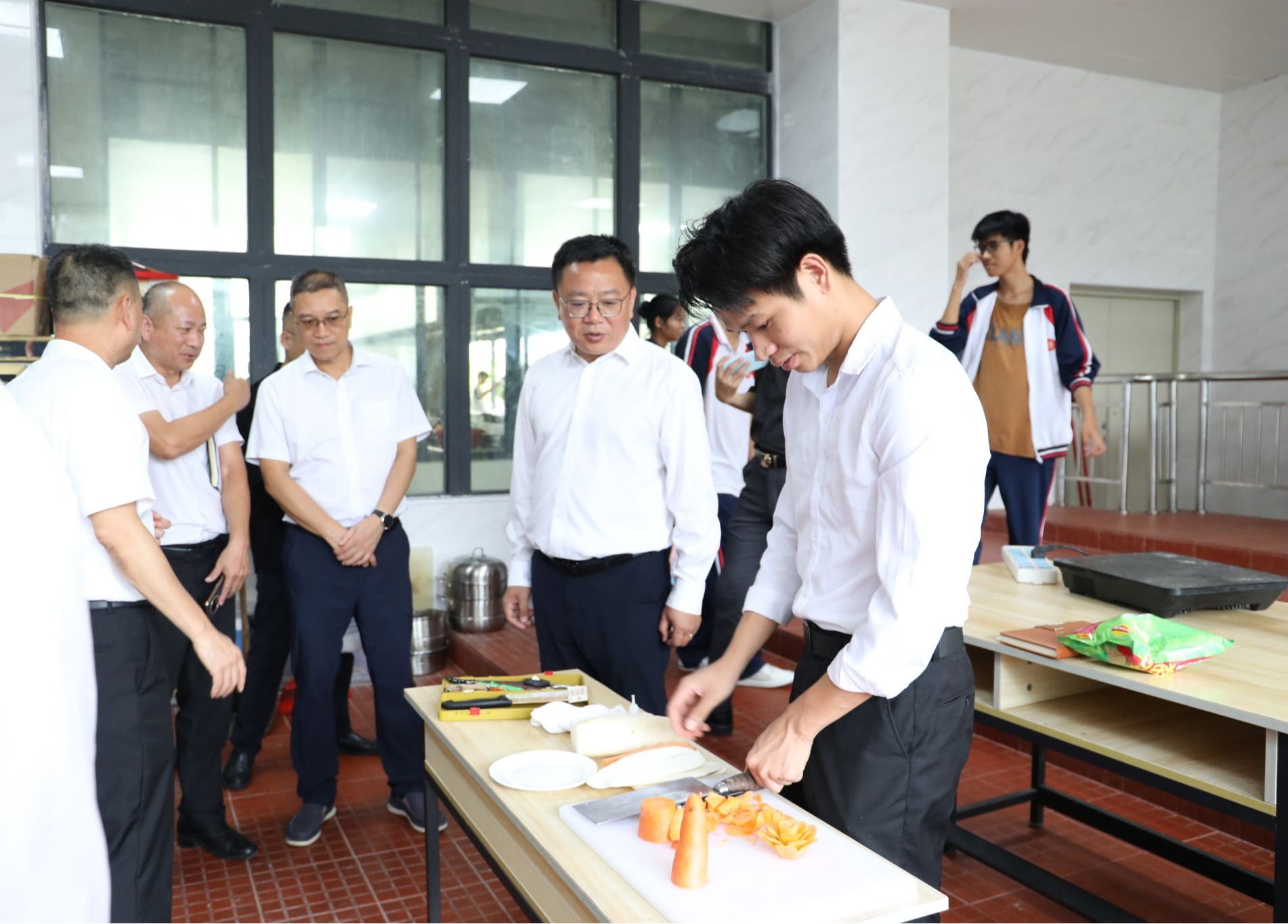 调研组一行还走访了昌江县职业教育中心,深入焊接、玉石雕刻、烹饪等专业实训室,亲切看望在此任教的海经贸2021届毕业生李德。王华说,两校有良好的合作基础,下一步将推动在人才培养标准、课程体系建设、实训资源共享等方面的深度衔接,共同助力职业教育高质量发展。