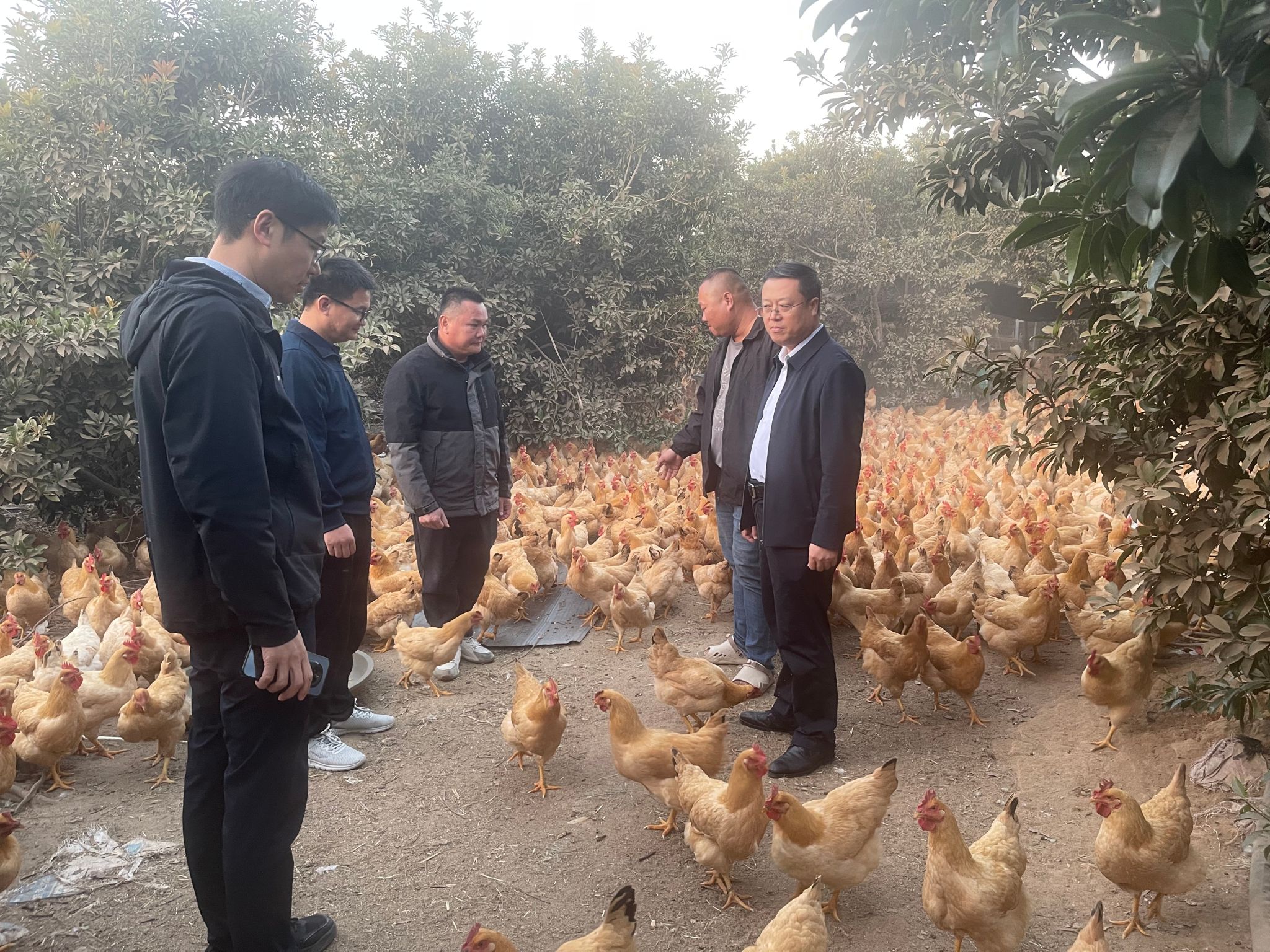 调研组首先走进学校助力扶持的昌江水头村汇森种养殖农民专业合作社,向致富带头人莫宙详细了解三黄鸡养殖规模、生长状况,并重点询问后续销售规划,并现场协调相关资源,推动合作社产销对接。学校将以消费帮扶为抓手,投入18.9万元向合作社集中采购首批近2000只三黄鸡,支持致富带头人带动脱贫户共同发展,增强特色养殖产业的市场竞争力。
