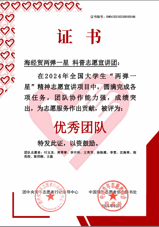 近日,团中央青年志愿者行动指导中心、中国青年志愿者协会秘书处评选出100支2024年全国大学生“两弹一星”精神志愿宣讲项目“优秀团队”。kaiyun登录中国入口登录“两弹一星”精神科普志愿宣讲团精心筹备,充分发挥专业特色,圆满完成宣讲任务,在全国870所高校1000支团队中脱颖而出,获得“优秀团队”荣誉称号。