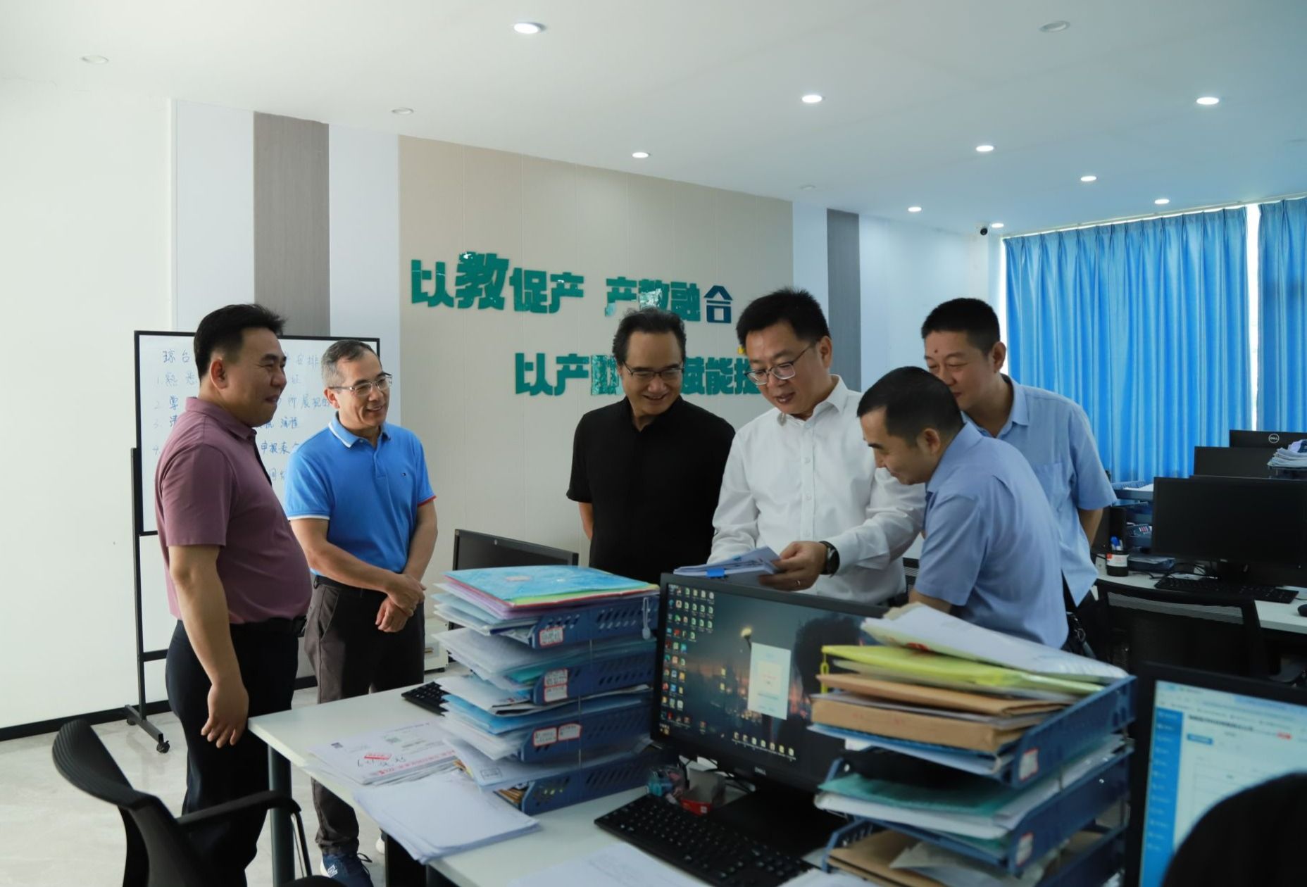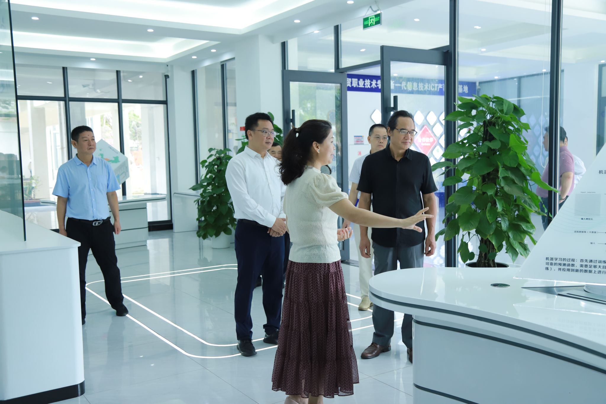 王华陪同省社科联一行参观考察校园,先后来到智慧旅游产教融合实训基地、汽车检测与维修实训中心、数智财务产教实践基地和新一代信息技术ICT产教融合基地。有关负责人介绍了学校办学有关情况和近年来取得的成绩。