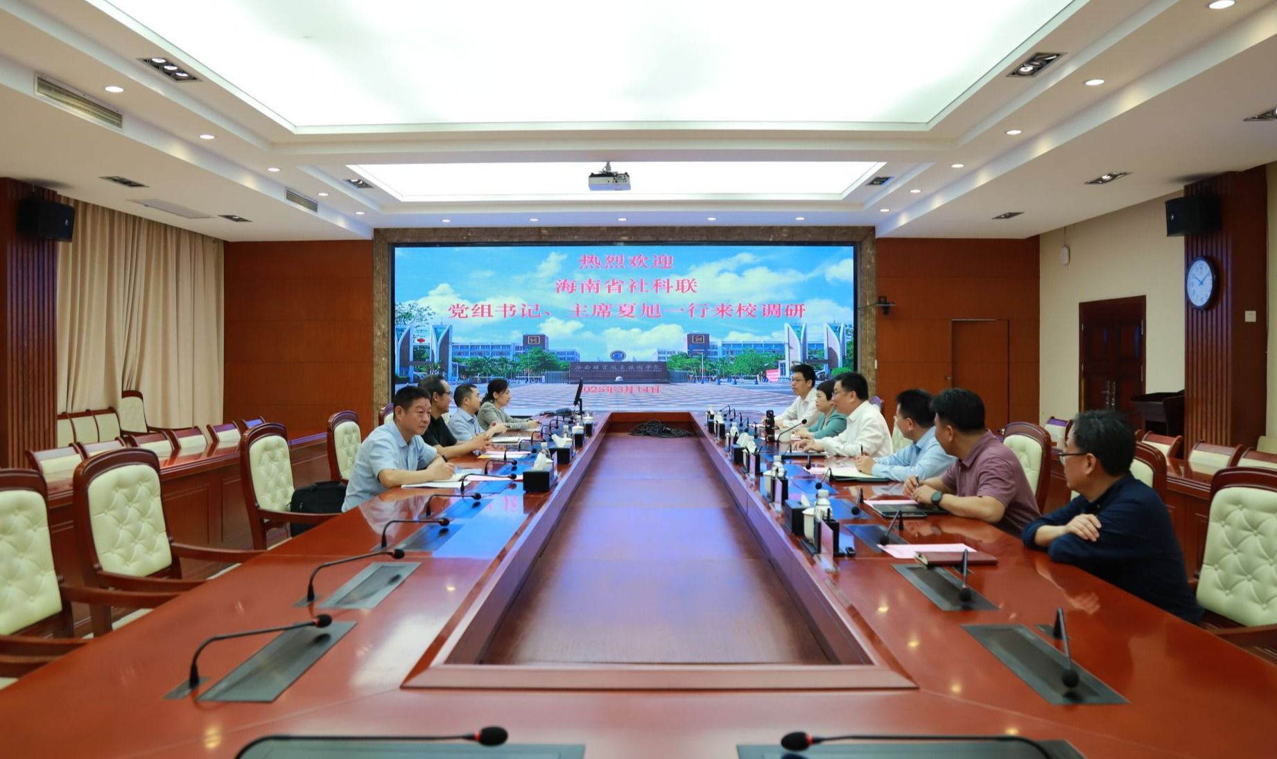 2025年3月14日,海南省社科联党组书记、主席夏旭一行4人来到kaiyun登录中国入口登录,调研学校哲学社会科学工作情况。学校党委书记王华,党委副书记、校长崔昌华,党委委员、副校长万力维出席座谈会。