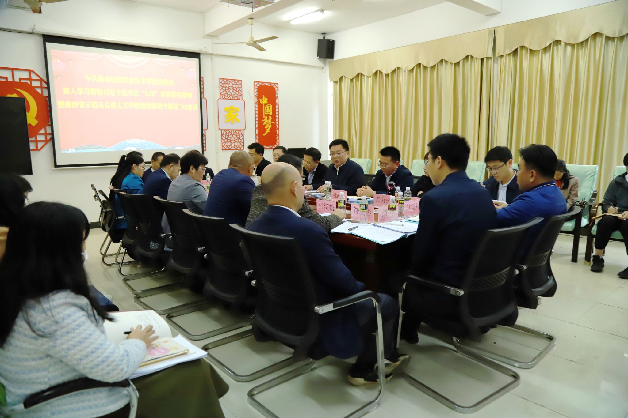 党委班子其他成员结合分管工作,围绕推进海南省示范马克思主义学院建设分享思考,作出指导性意见。