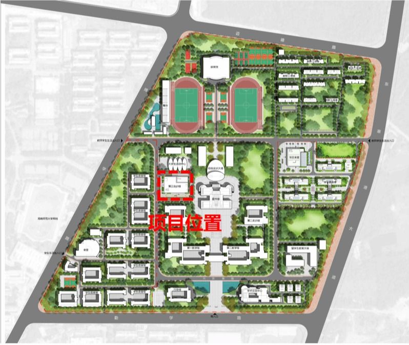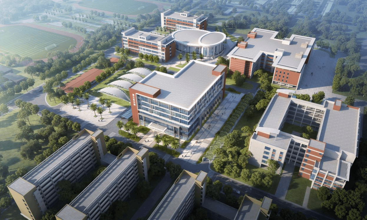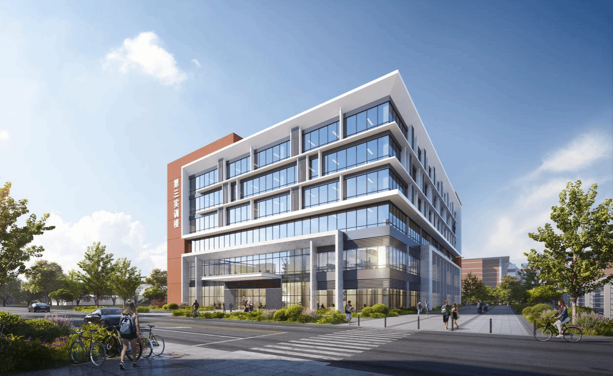第三实训楼设计秉承海经贸校园建筑传统,以典雅的红白为主色调,通过竖向格栅的错落叠级设计,营造富有韵律感的立面效果。项目占地面积8215平方米,总建筑面积20895平方米(其中地上17122 平方米,地下3773平方米),建筑高度30米。实训楼将聚焦海南自贸港产业发展需求,打造融合生态智慧与人文关怀的现代化实训基地,为师生提供创新开放的研学空间。
