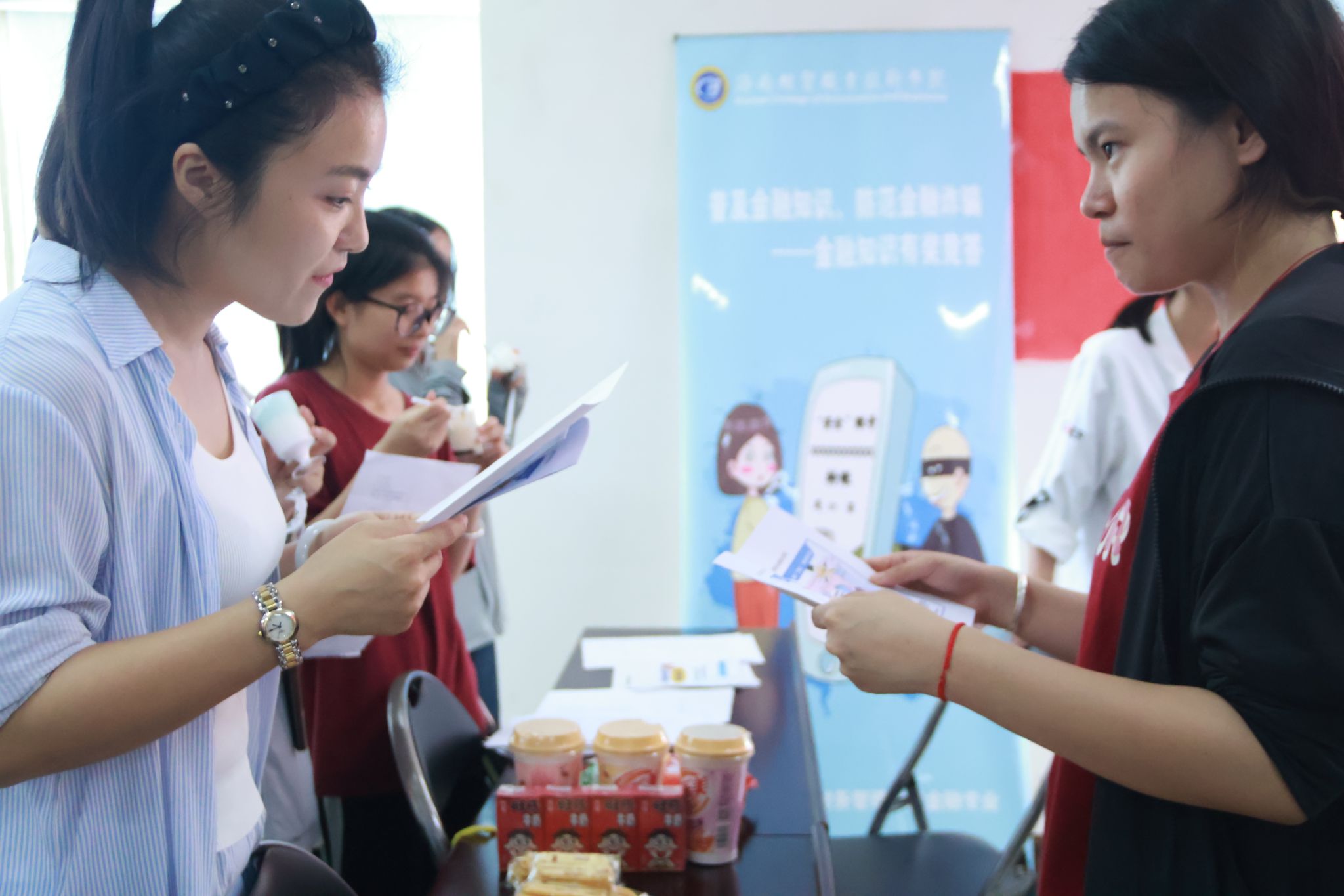 反诈防骗,敲响警钟。财务管理学院师生为大家分发“普及金融知识、防范金融诈骗”宣传册,并进行了有奖问答互动。宣传册以漫画形式,把知识点以通俗易懂的方式传递给居民,提醒大家日常生活中注意“金融陷阱”。