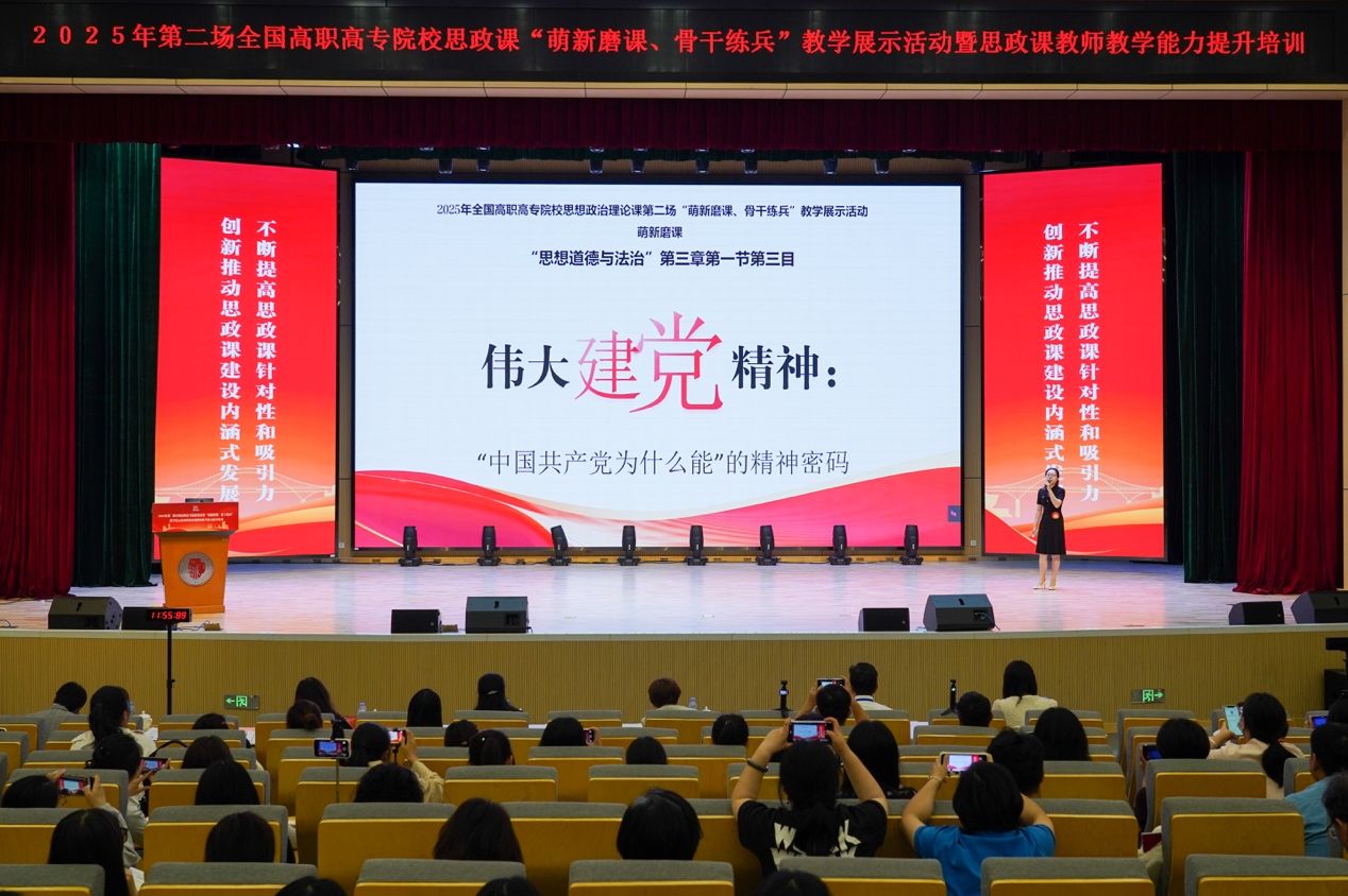 在5月17日的现场展示环节,符夏莹老师从提交的“思想道德与法治”课程5个展示题目中随机抽题,采用问题链教学模式,围绕“伟大建党精神的内涵”,环环相扣、层层递进,引导学生逐步深入思考。她以丰富的历史案例、生动的教学语言,将伟大建党精神的深刻内涵清晰、透彻地呈现给学生,为大家呈现了一堂极具启发性和感染力的思政课。