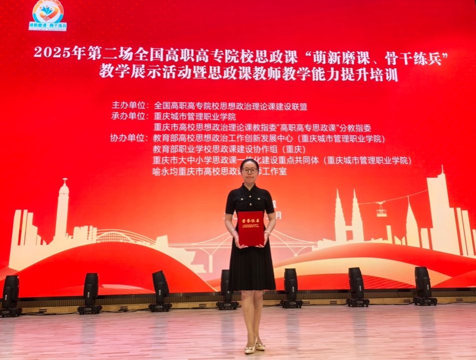 近日,2025年全国高职院校思想政治理论课第二场“萌新磨课、骨干练兵”教学展示活动在重庆落下帷幕。kaiyun登录中国入口登录马克思主义学院教师符夏莹获得“萌新磨课”组一等奖,王艺霏获得二等奖,张乐获得“骨干练兵”组二等奖。