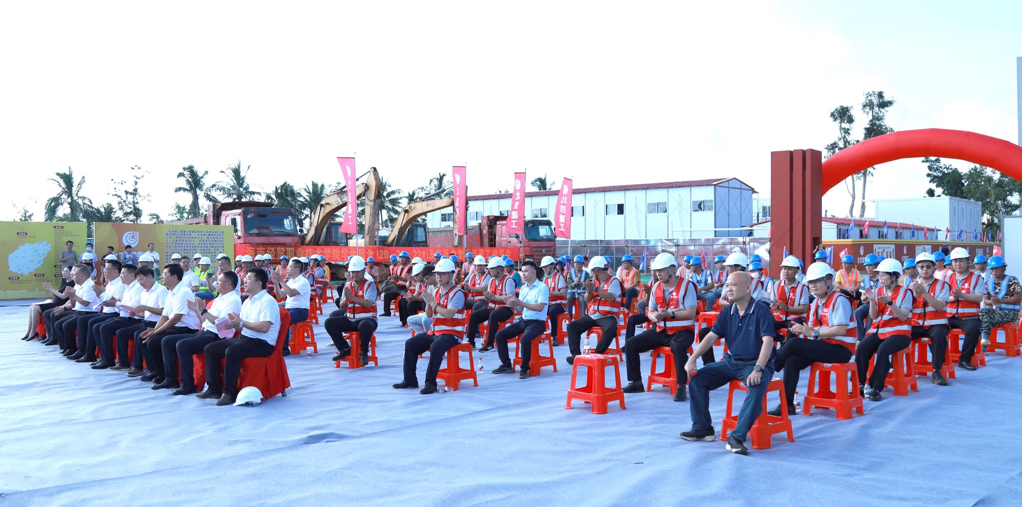 学校党委书记王华,党委副书记、校长崔昌华,党委委员、副校长陈修焕,党委委员方天海,设计单位、项目代管单位、监理单位和施工单位有关负责人,师生代表们和项目部员工齐聚一堂,共同见证这一重要时刻。