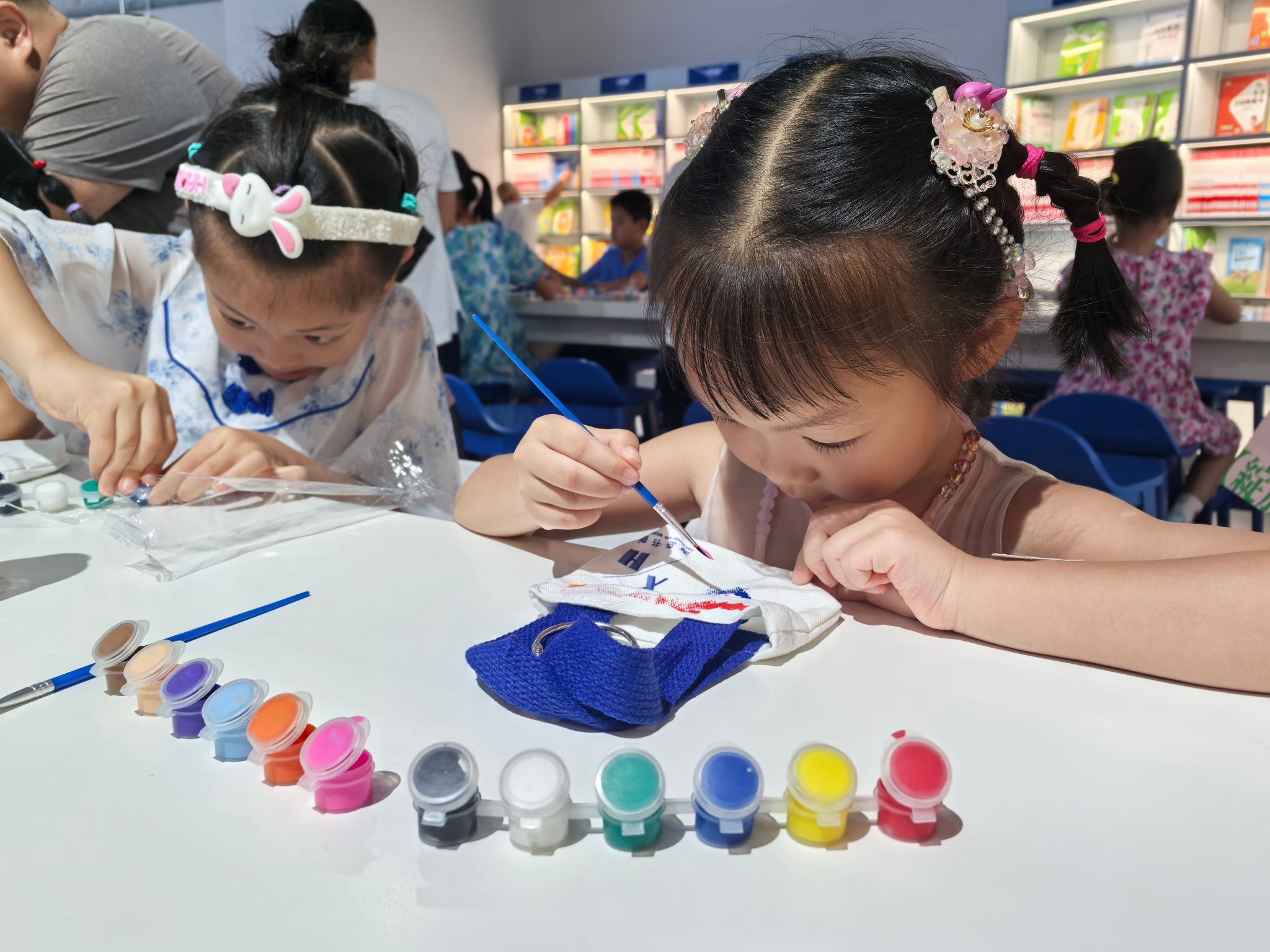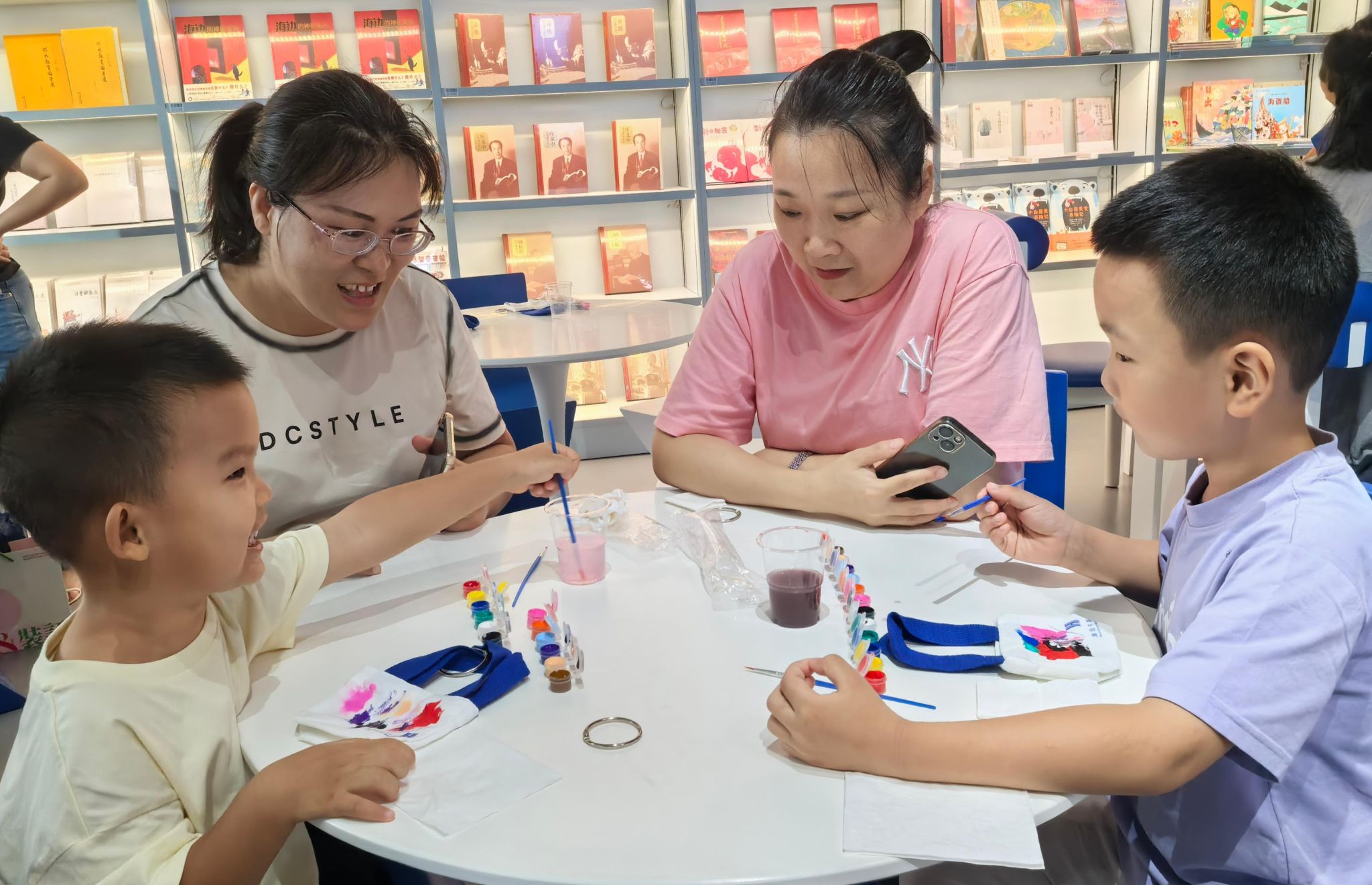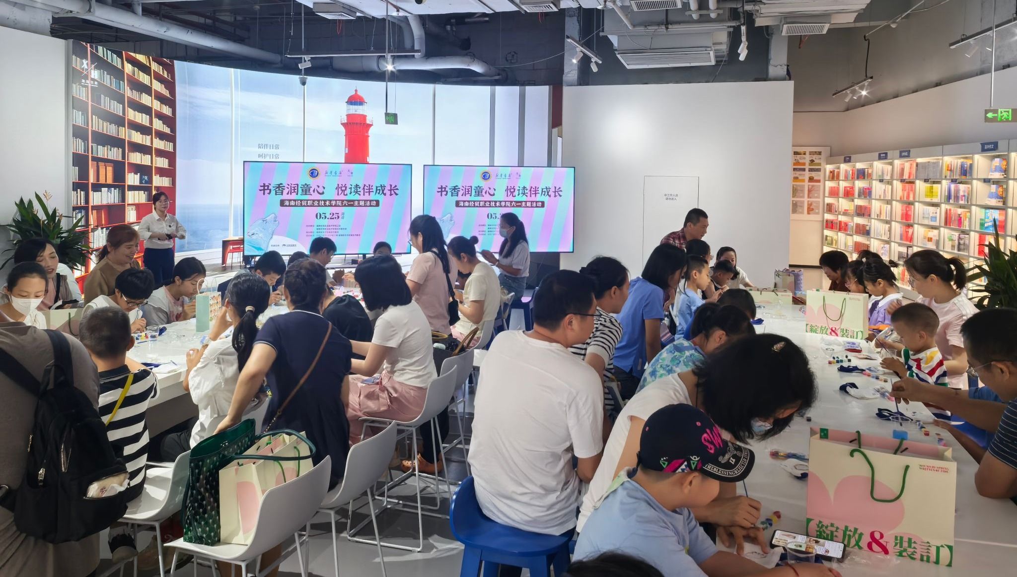 学校妇联主席丘秀文向孩子们送上节日祝福,希望海经贸教职工家庭以此次活动为契机,让阅读成为日常生活的习惯,共同营造浓厚的家庭阅读氛围,增进亲子关系。在图书分享环节,孩子们争相举手分享感受,现场气氛热烈活泼。手工制作环节中,孩子们充分发挥想象力和创造力,在家长的陪伴与协助下,用五彩的画笔在布袋上描绘出心中的美好图案,亲子间的温情在协作中悄然升温。