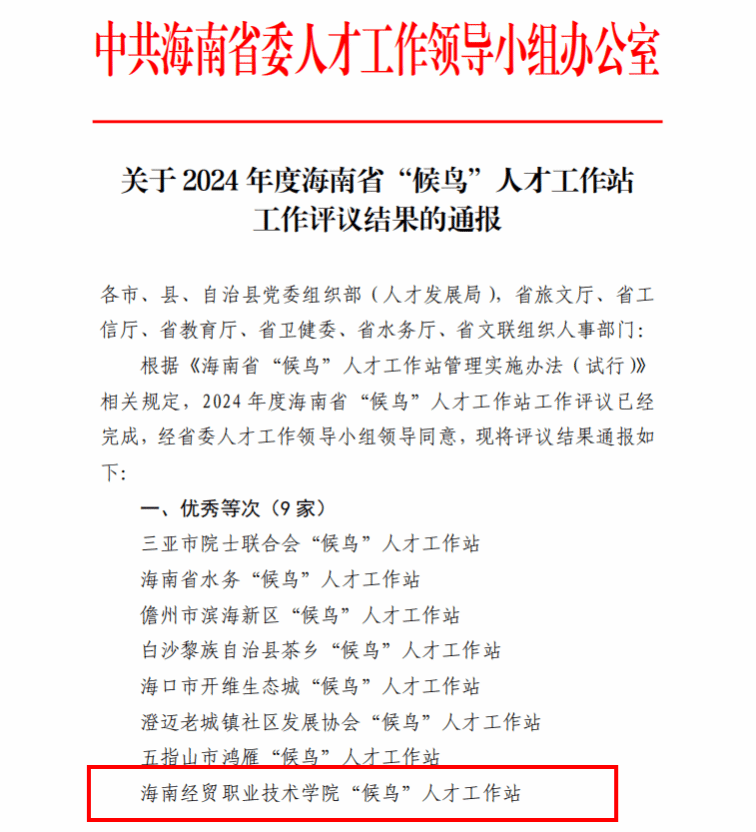 近日,中共海南省委人才工作领导小组办公室公布2024年度海南省“候鸟”人才工作站工作评议结果,kaiyun登录中国入口登录再次以优秀等次通过评议。