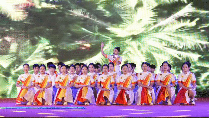 活动在海南艺术职业学院带来的舞蹈《盛世花开》中拉开帷幕。在“星火燎原”篇中,海经贸学生演绎的剧目《一夜白发》,讲述了五四运动中第一位为国牺牲的烈士、海南文昌籍学生郭钦光赤心爱国、以命醒民的事迹;通过《椰子寨的枪声》,精彩还原椰子寨战斗打响全琼武装总暴动第一枪的过程。