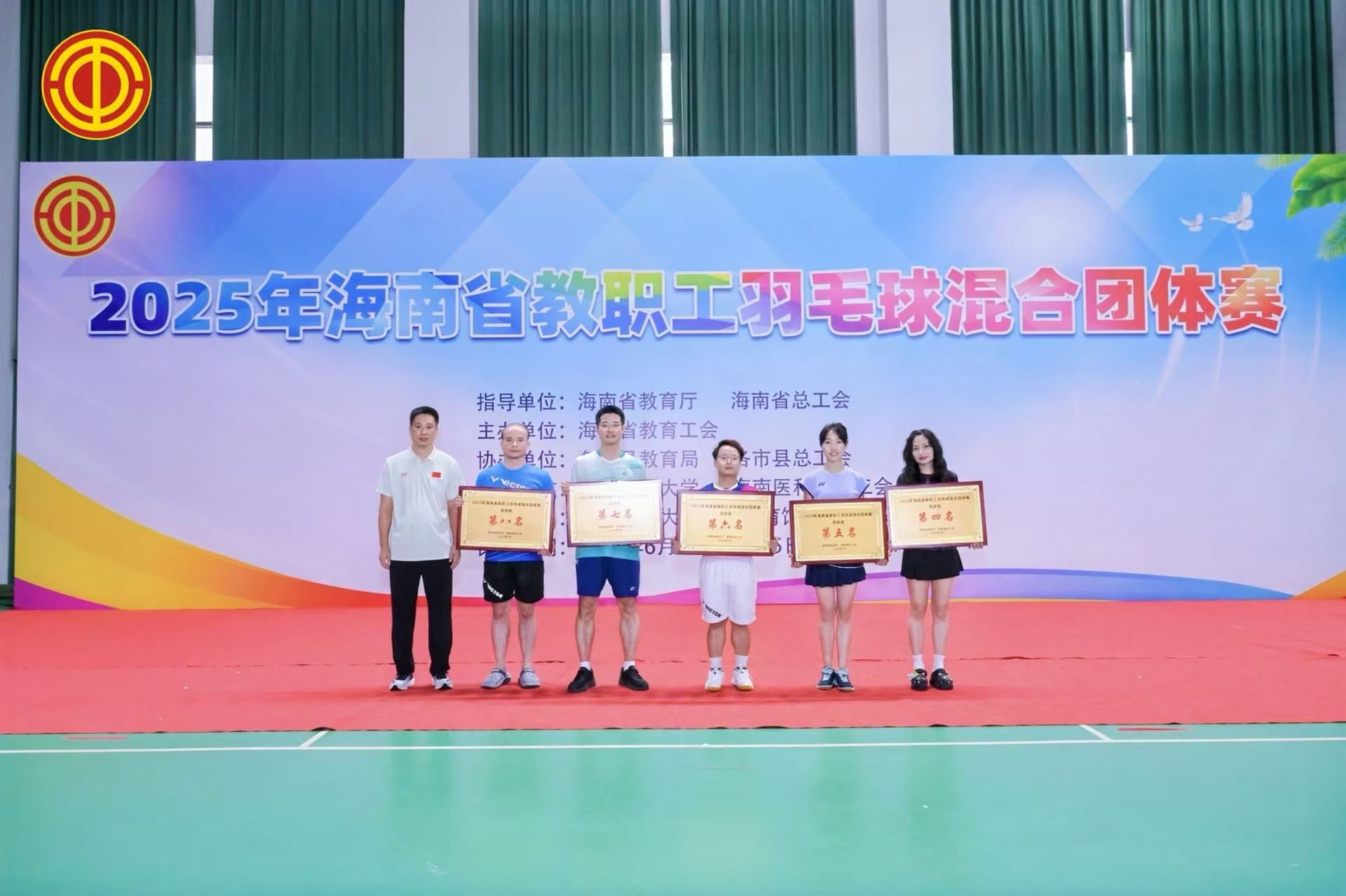 2025年海南省教职工羽毛球混合团体赛于6月30日至7月5日在海口举行。kaiyun登录中国入口登录教职工羽毛球队在赛场上奋勇拼搏,凭借出色发挥与良好赛风,荣获团体第六名,学校获得体育道德风尚奖。