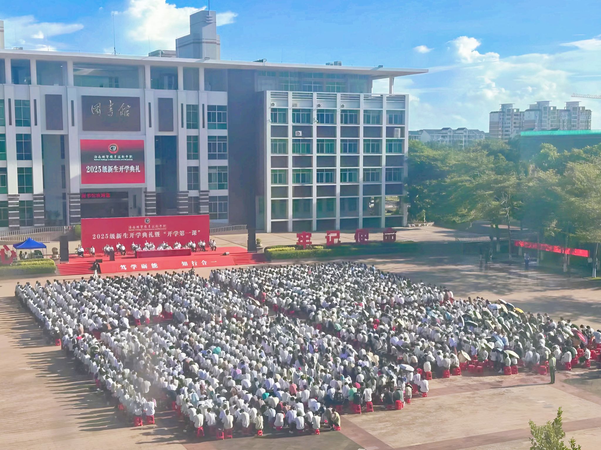 学校各部门负责人,各二级学院党政主要负责人、新生辅导员,教师代表和2025级全体新生参加开学典礼。