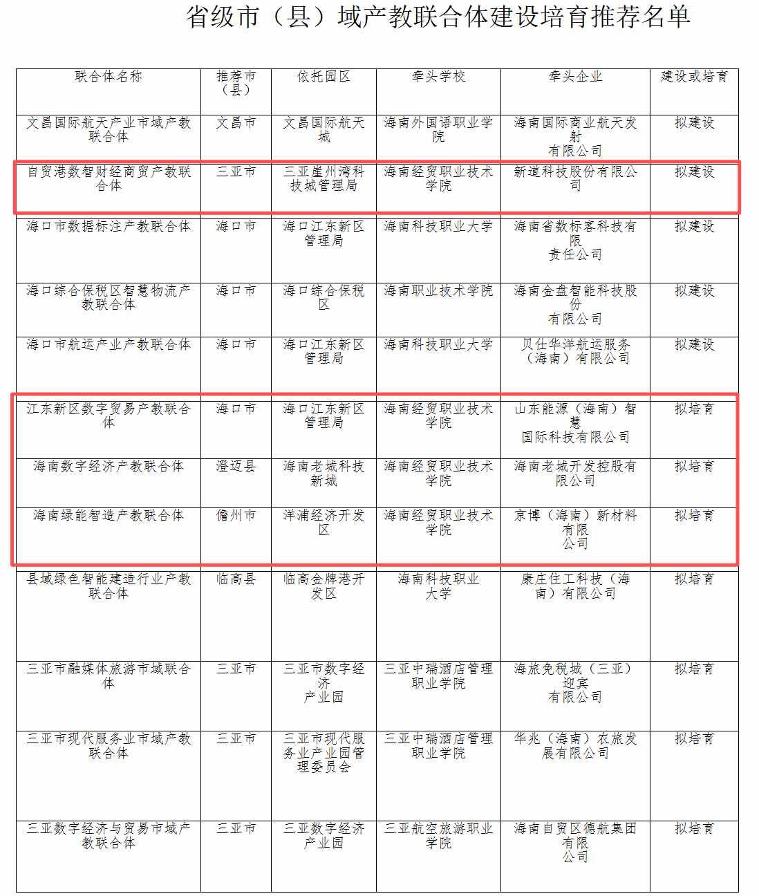 4个产教联合体中,自贸港数智财经商贸产教联合体跻身我省首批市县域产教联合体拟建设名单;江东新区数字贸易产教联合体、海南数字经济产教联合体及海南绿能智造产教联合体纳入首批拟培育建设名单。