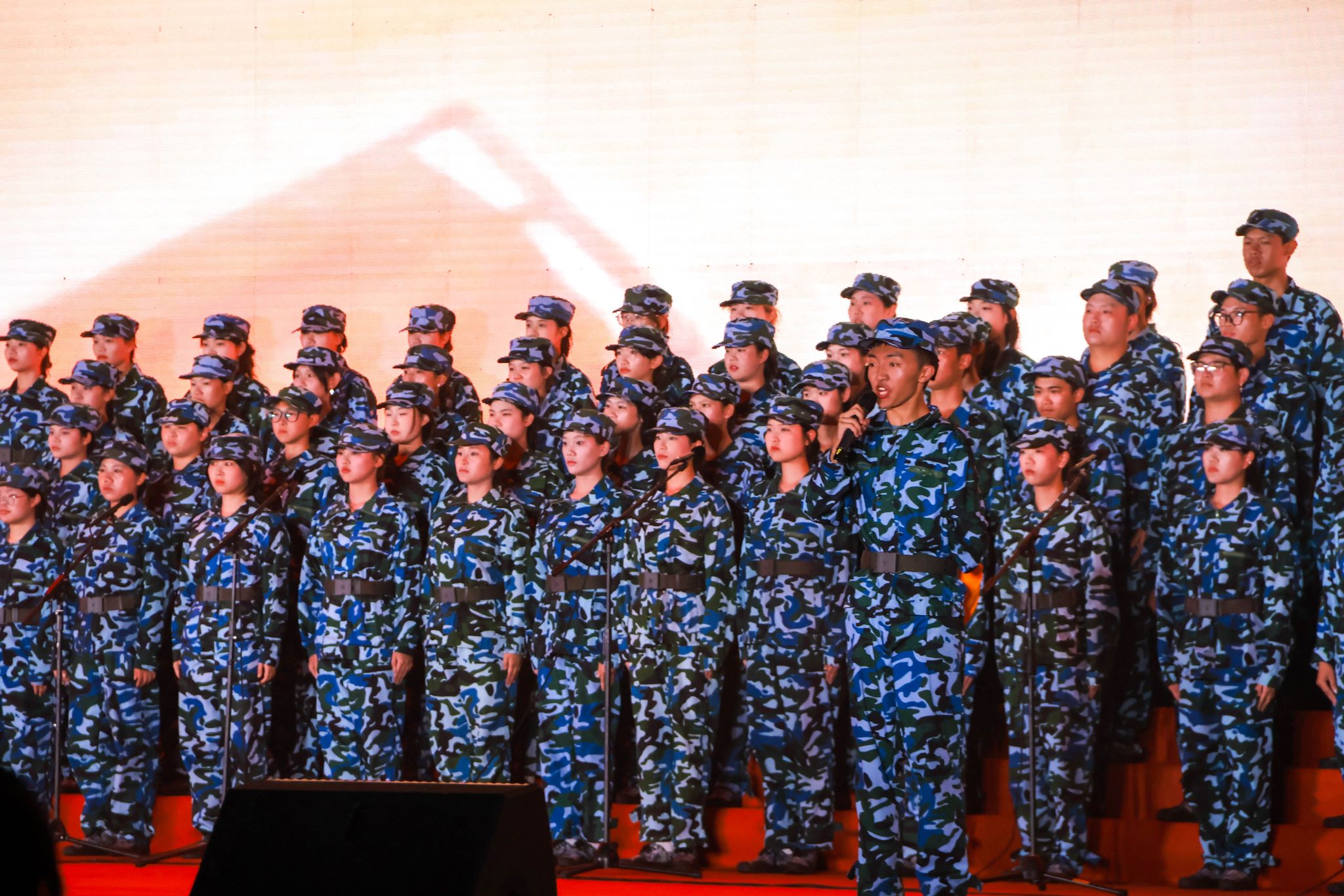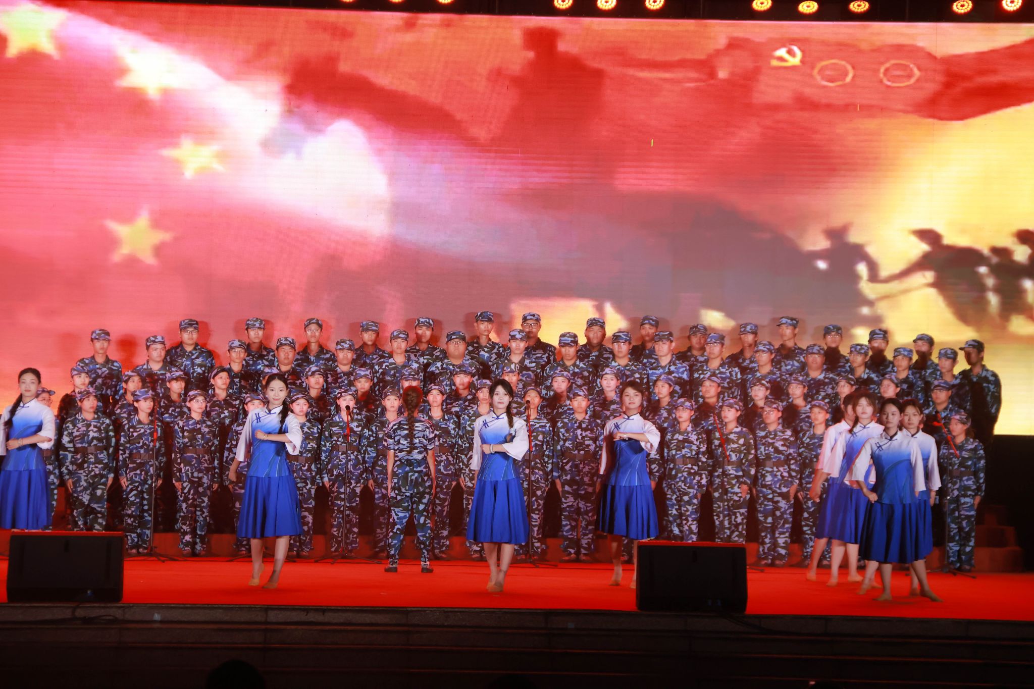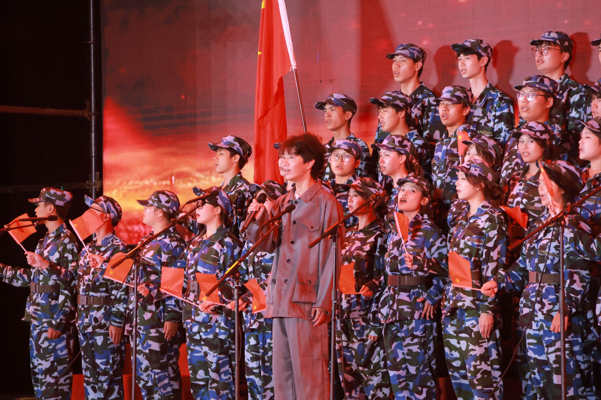体育与健康学院的学子们将一曲《没有共产党就没有新中国》唱得铿锵有力、气势十足。他们的歌声里,既有对中国共产党带领人民披荆斩棘、开创伟业的深情回望,更饱含着对美好未来的憧憬与期许,激昂的情绪和嘹亮的曲调尽显青年学子的热血与担当。