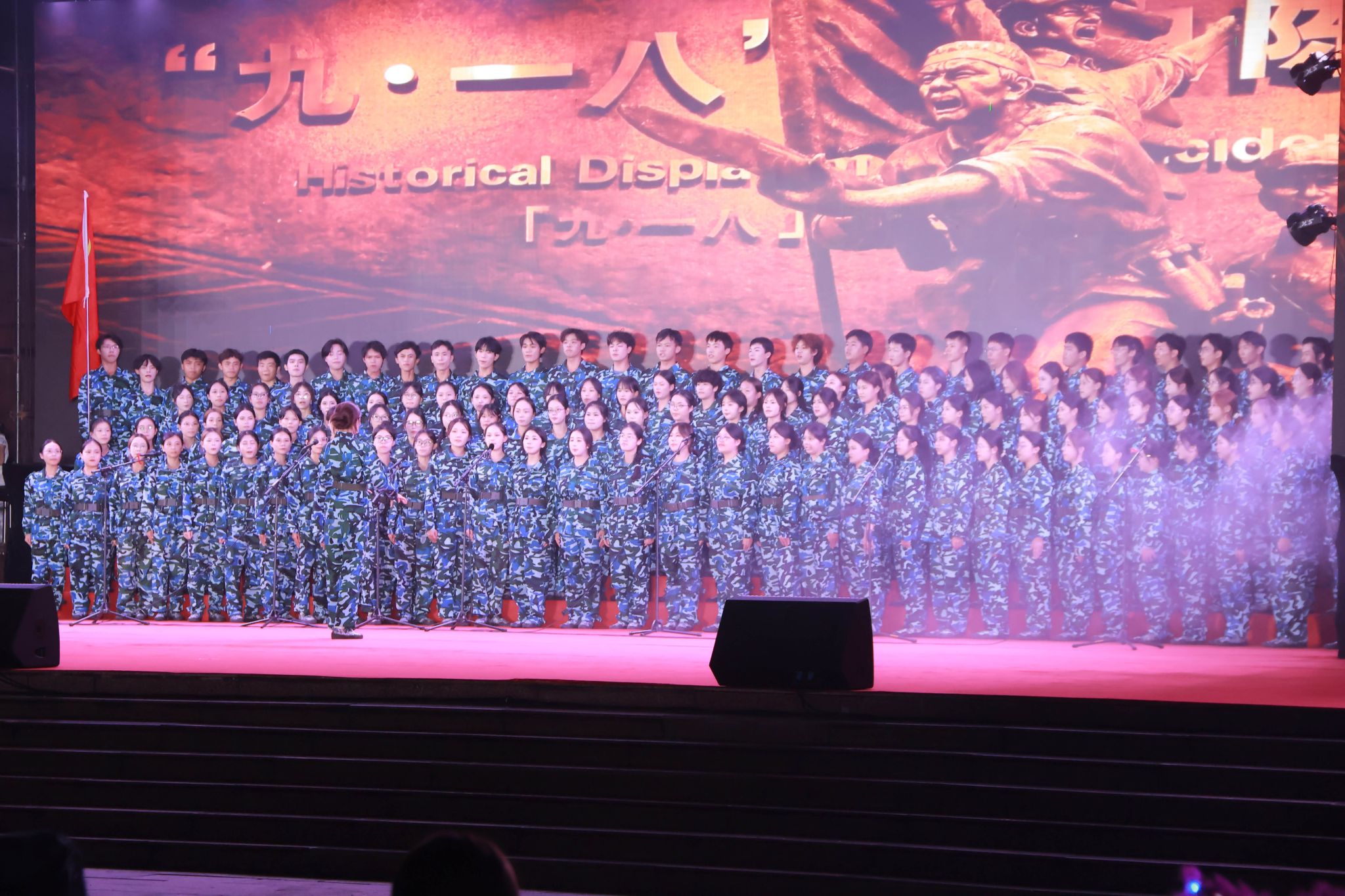 国际贸易学院参赛队伍率先登场,一曲《保卫黄河》瞬间点燃全场。激昂的歌声中,保家卫国的豪迈气概扑面而来,仿佛让人穿越时空,看见滔滔黄河之畔,中华儿女挺身而出、誓死守护山河的壮阔身影。