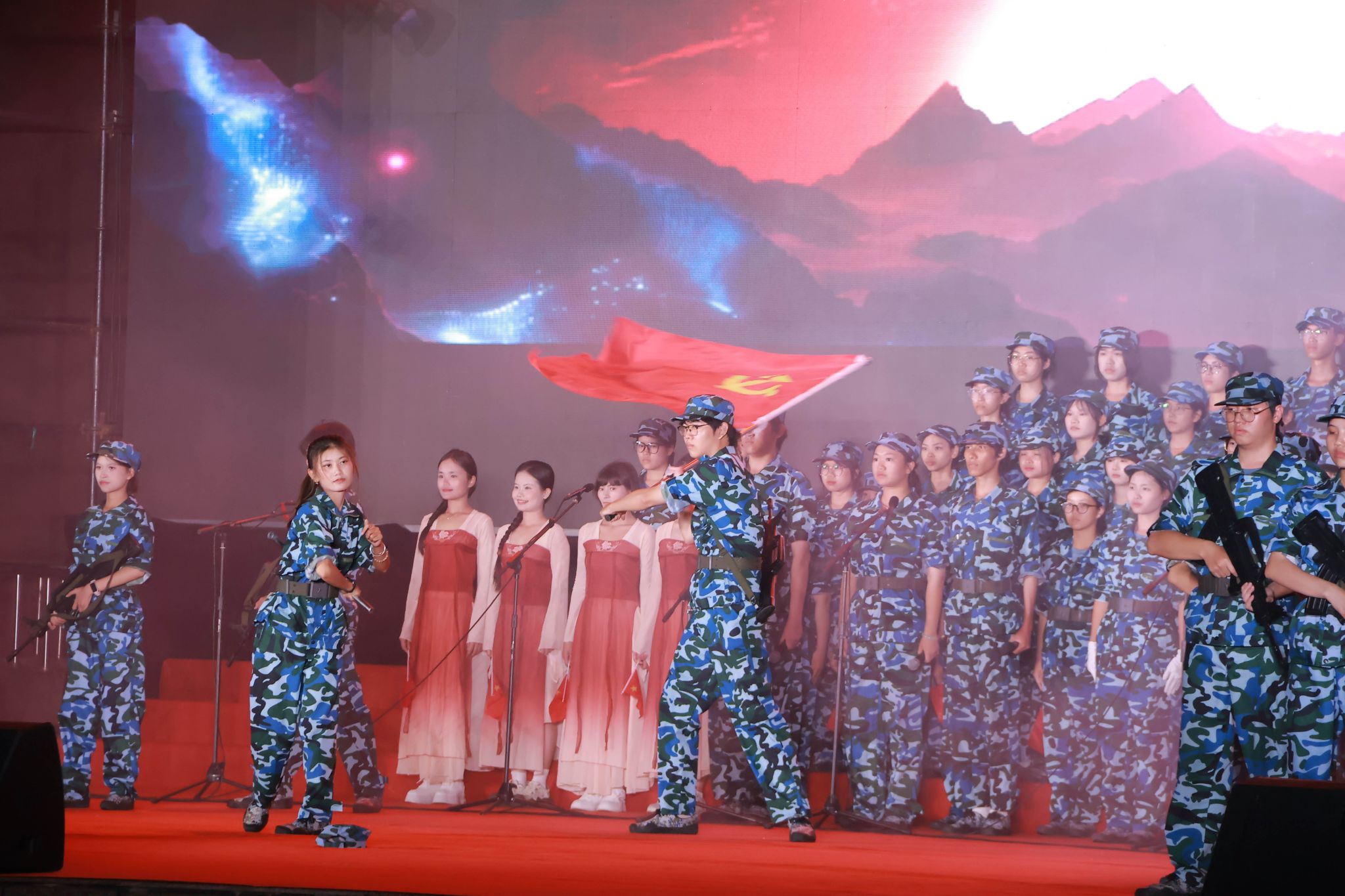 用铿锵有力的旋律传递出传承红色基因的坚定信念,以饱满真挚的情感彰显续写时代华章的决心。人文艺术学院学子们带来的《没有共产党就没有新中国》唱出了百年征程中党与人民的血肉联系,熟悉的旋律唤起了听众对峥嵘岁月的深切追忆。
