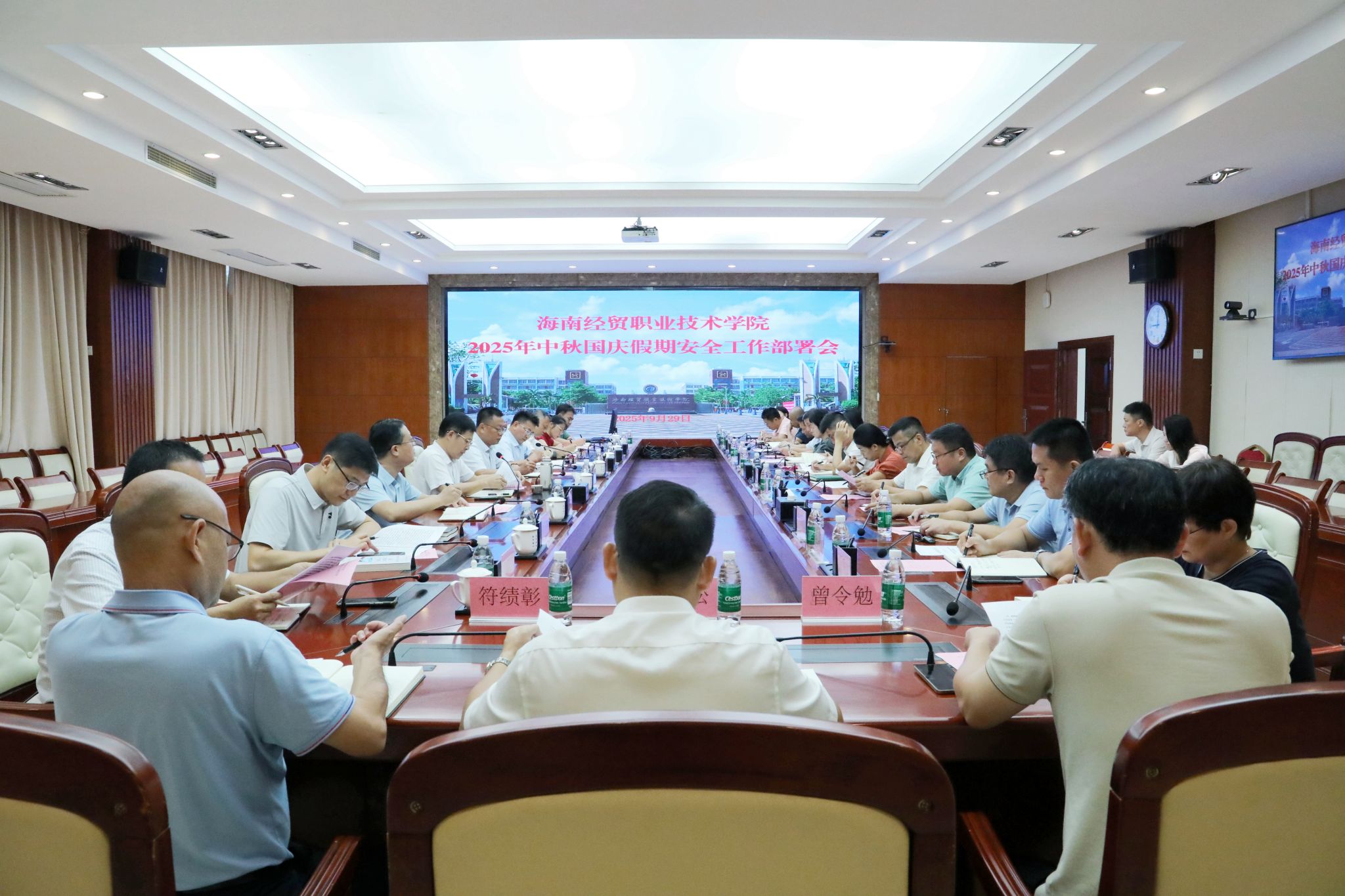 9月29日,kaiyun登录中国入口登录召开2025年中秋国庆假期安全工作部署会。学校党委书记王华,党委副书记、校长崔昌华,党委委员和校领导陈修焕、符史杭、李厚永、杨娜、田小林出席会议。陈修焕主持会议。
