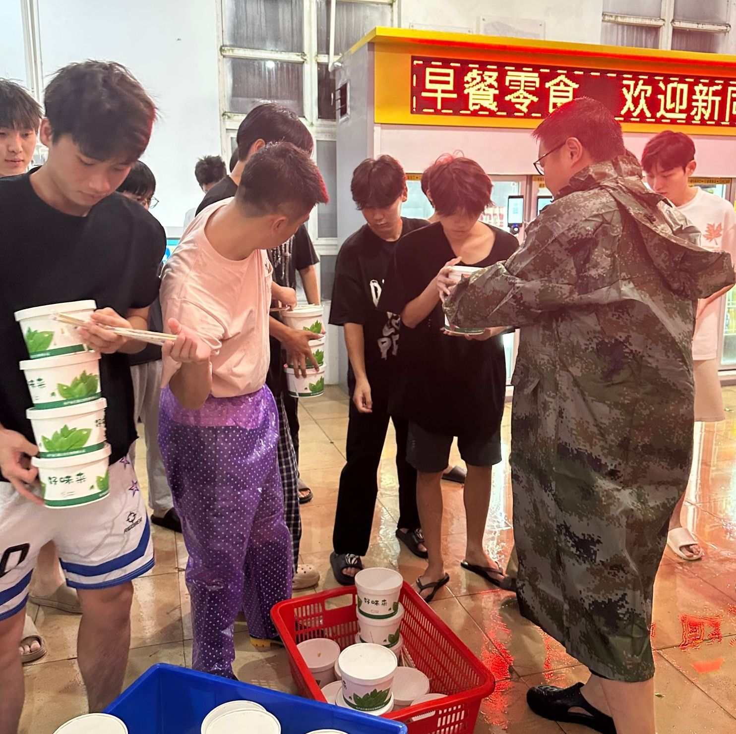 台风到来之前,校领导现场检查指导校园防风防汛预案落实、风险隐患排查及应急准备等工作情况。后勤、保卫等职能部门工作人员对各类户外设施设备进行加固与防护,全方位筑牢校园安全防线。在风雨中,学工队伍入住学生宿舍,始终与同学们在一起,有序组织高楼层学生向低楼层安全区域转移,确保学生平安。学校悉心组织送餐服务,将热腾腾的饭菜送到学生手中,让关怀与温暖传递到每一位学子心间。