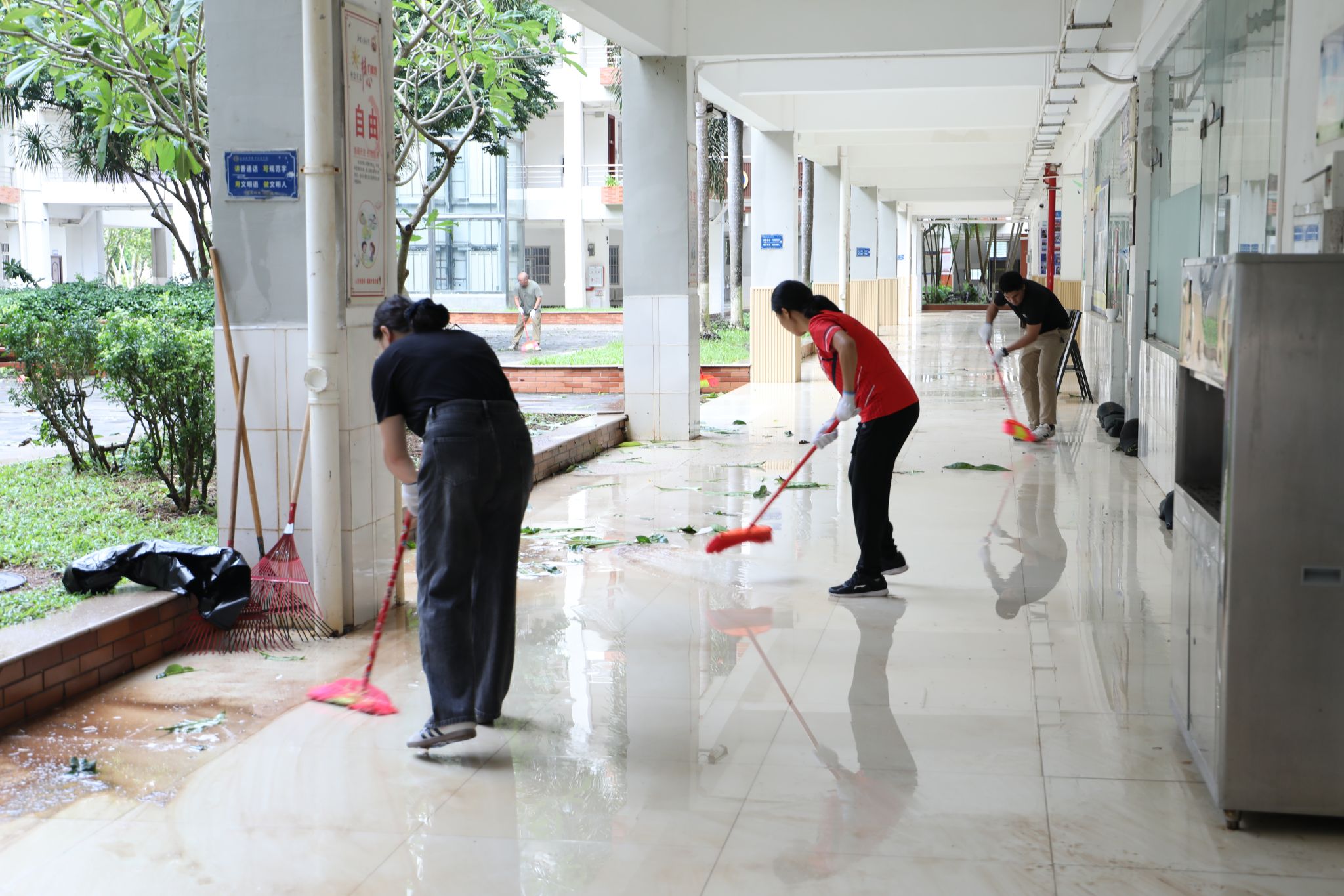 6日一早,校领导对台风灾后校园恢复工作进行全面动员部署,要求党员干部主动担当、齐心协力,为节后恢复正常教学秩序保驾护航。教职工闻令而动,同学们积极参与,迅速投入树木扶正、道路清障、校园清洁、垃圾清运及设施检修等工作。大家通力合作,全力以赴恢复校园整洁与活力。