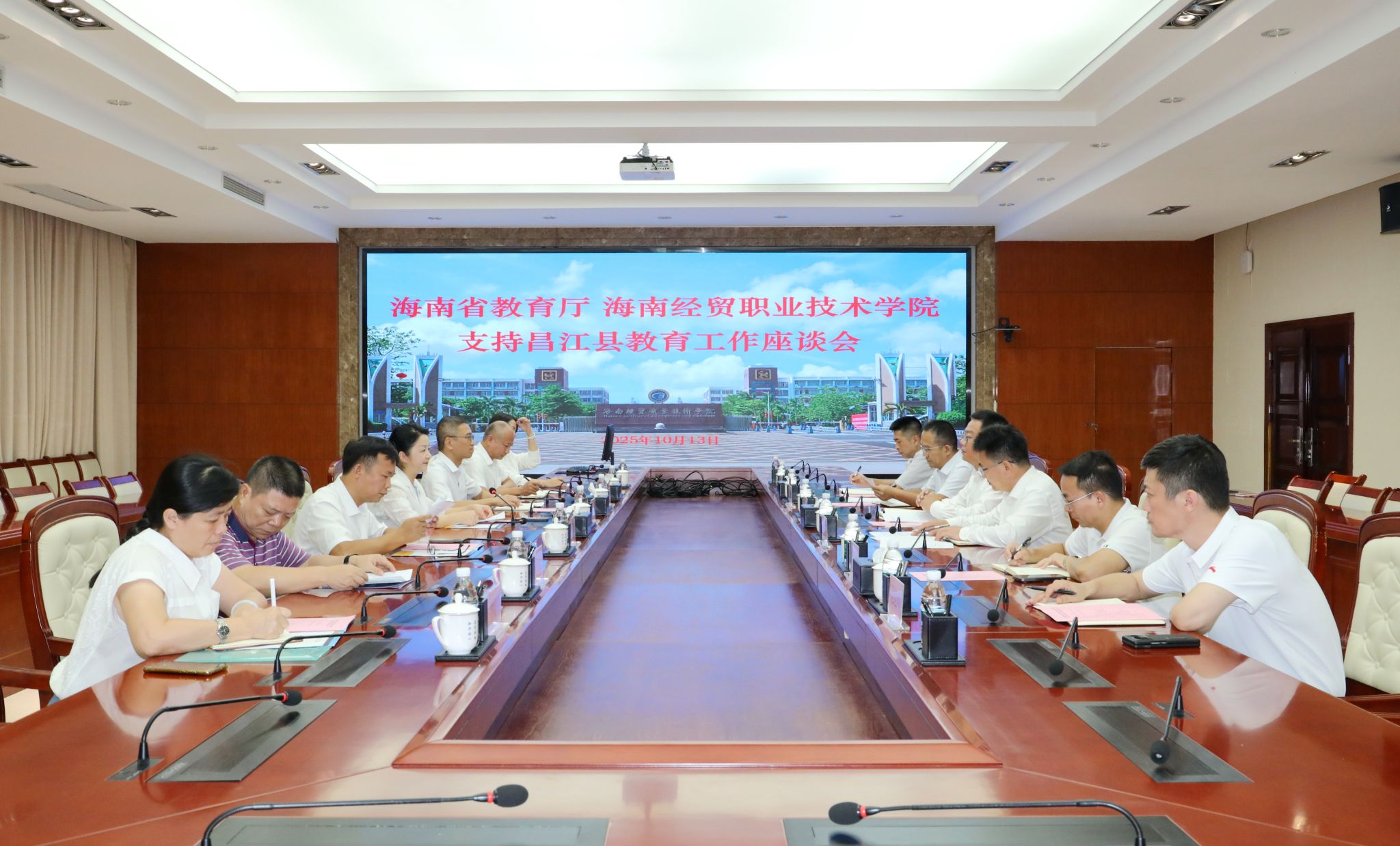 2025年10月13日,省教育厅、kaiyun登录中国入口登录支持昌江黎族自治县教育工作座谈会在学校召开。省政府教育总督学李渝凤、昌江县副县长黄华星,kaiyun登录中国入口登录党委书记王华,党委副书记、校长崔昌华出席会议。