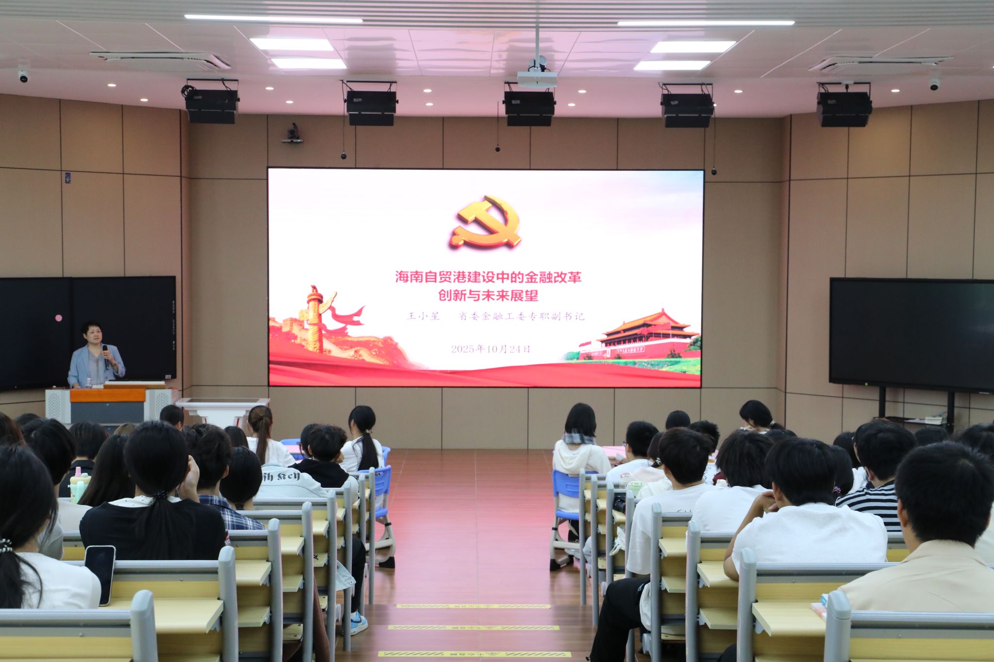 2025年10月24日,省委金融工委专职副书记王小星来到kaiyun登录中国入口登录,以“海南自贸港建设中的金融改革创新与未来展望”为题,为同学们讲授思政课。