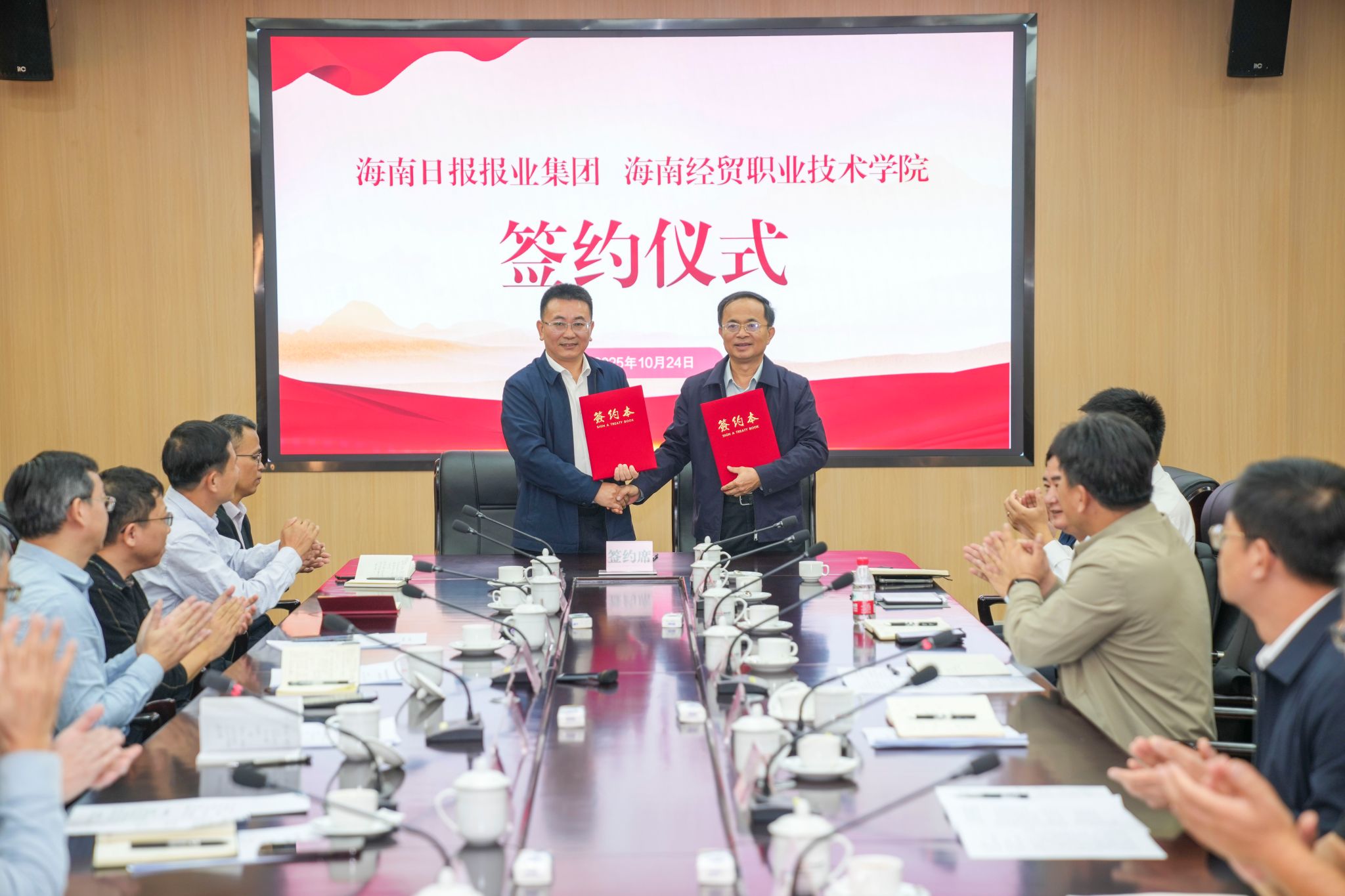 翁朝健表示,在海南自贸港全岛封关运作即将实施的重要节点上,双方的合作是传播力与专业力的深度嫁接,必将形成“1+1>2”的聚合效应。报业集团将充分发挥主流媒体传播优势,推动传媒产业与高等职业教育双向赋能,积极培育具有传媒特色的产教联合体,服务海南国际教育创新岛建设,助力海南教育强省建设。