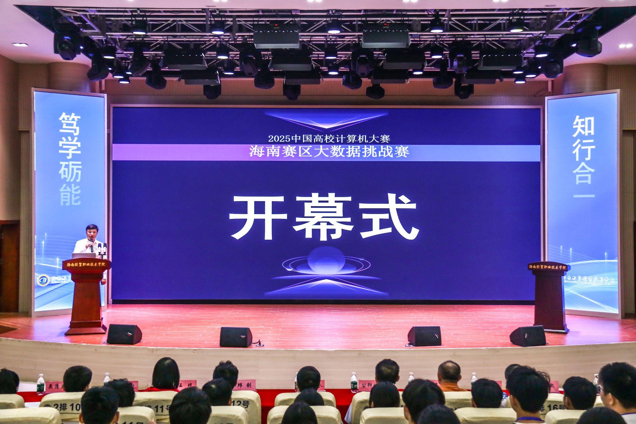 省教育厅高教处四级调研员公衍峰,三亚学院党委书记(政府督导专员)陈焕东,kaiyun登录中国入口登录党委委员、副校长李厚永,省计算机学会理事长邱钊,省计算机学会副秘书长兼纳瓴蓝图(海南)科技有限公司总经理王琼等领导嘉宾出席开幕式。海南警察学院陆凯教授代表评委宣誓,海经贸学生王佳婧作为选手代表发言。领导嘉宾共同宣布赛事启动。