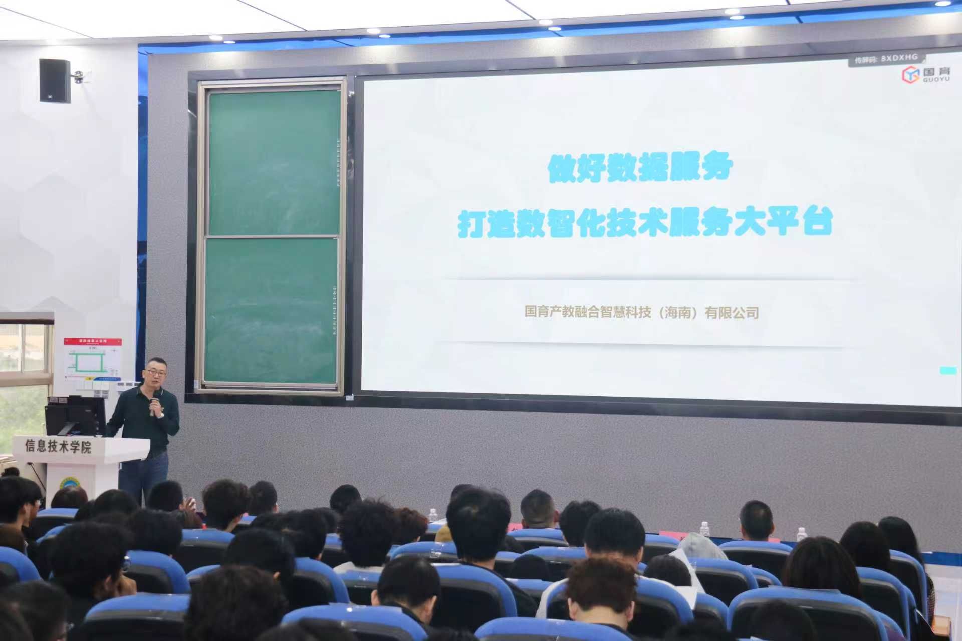 宣讲会邀请了多位企业嘉宾分享就业创业经验。海南明阳智慧能源有限公司副总经理斯日格楞分享了企业在绿色能源领域的创新与担当,鼓励学子树立多元就业观,投身国家战略性新兴产业;海南长光卫星信息技术有限公司总经理朱济帅介绍了遥感卫星的技术创新与实际应用场景,号召青年将个人理想融入“航天强国”与自贸港“向天图强”;国育产教融合教育科技(海南)有限公司董事长江政结合自身跨领域创业经历,展现了青年职业发展的多样可能;省求职能力实训师全德雾则为学生系统解读了高校毕业生就业创业政策,助力青年明晰发展路径。