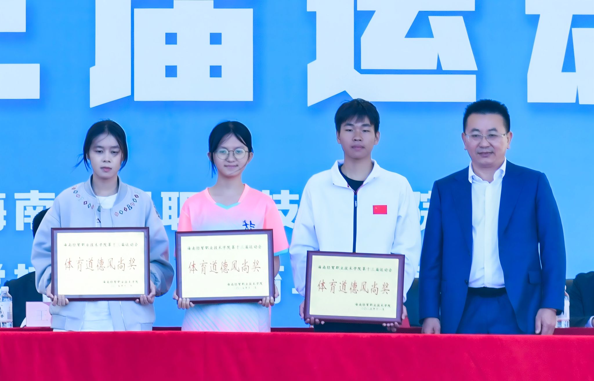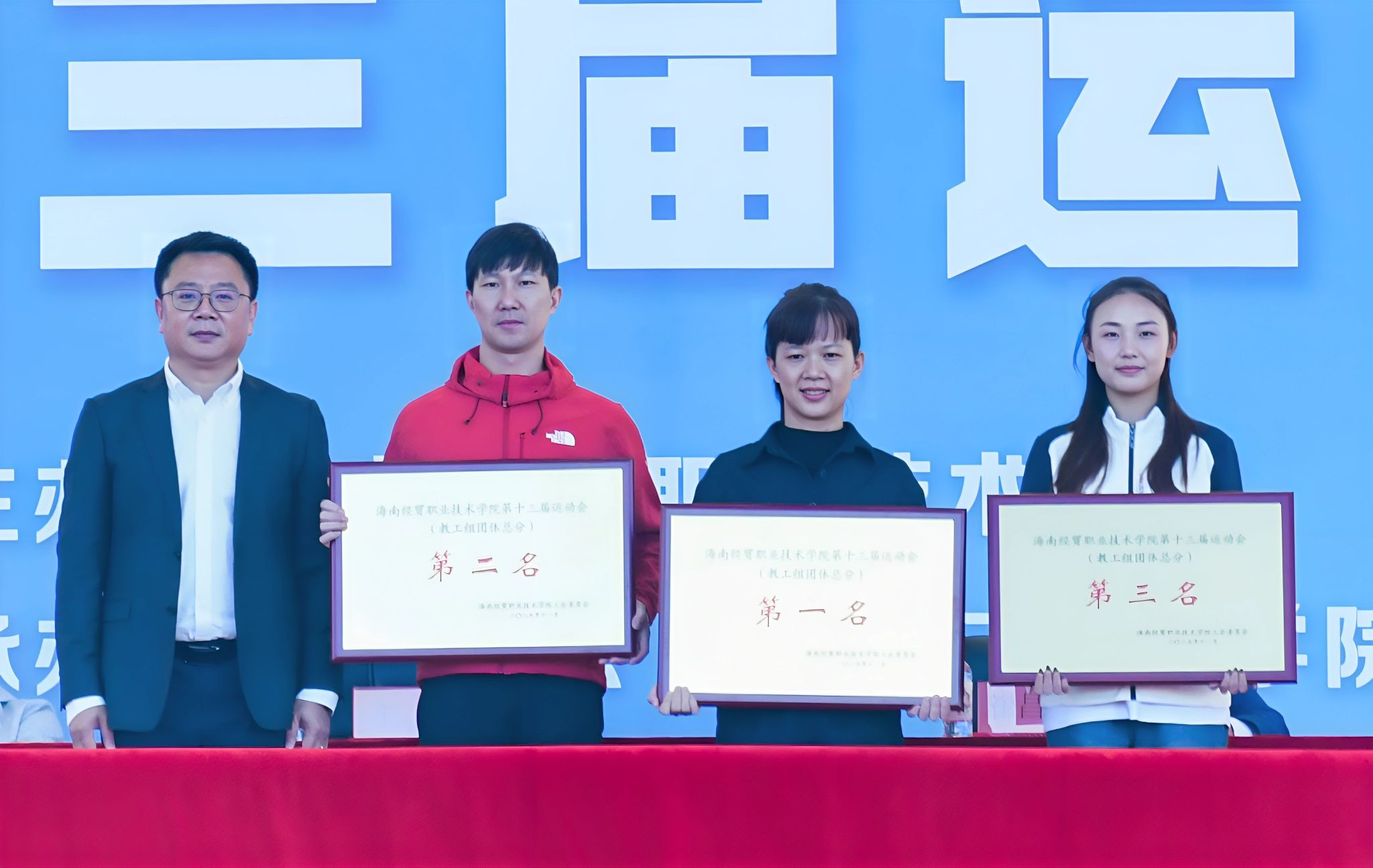 闭幕式上,学校表彰了本届运动会获奖团体和个人。机关第二分工会、国际贸易学院分工会、国际旅游学院分工会、机关第一分工会、机电与汽车工程学院分工会、体育与健康学院分工会分别获得教职工团体总分第一至第六名。体育与健康学院、国际旅游学院、国际贸易学院、财务管理学院分别荣获学生团体总分第一至第四名。国际旅游学院、国际贸易学院、信息技术学院获得体育道德风尚奖;人文艺术学院、财务管理学院、国际旅游学院获得入场式优秀奖;财务管理学院、信息技术学院、外国语学院获得啦啦操表演奖一、二、三等奖;尹桢、符发顺等30人获得“优秀裁判员”称号;王康权等18人获得“优秀运动员”称号。
