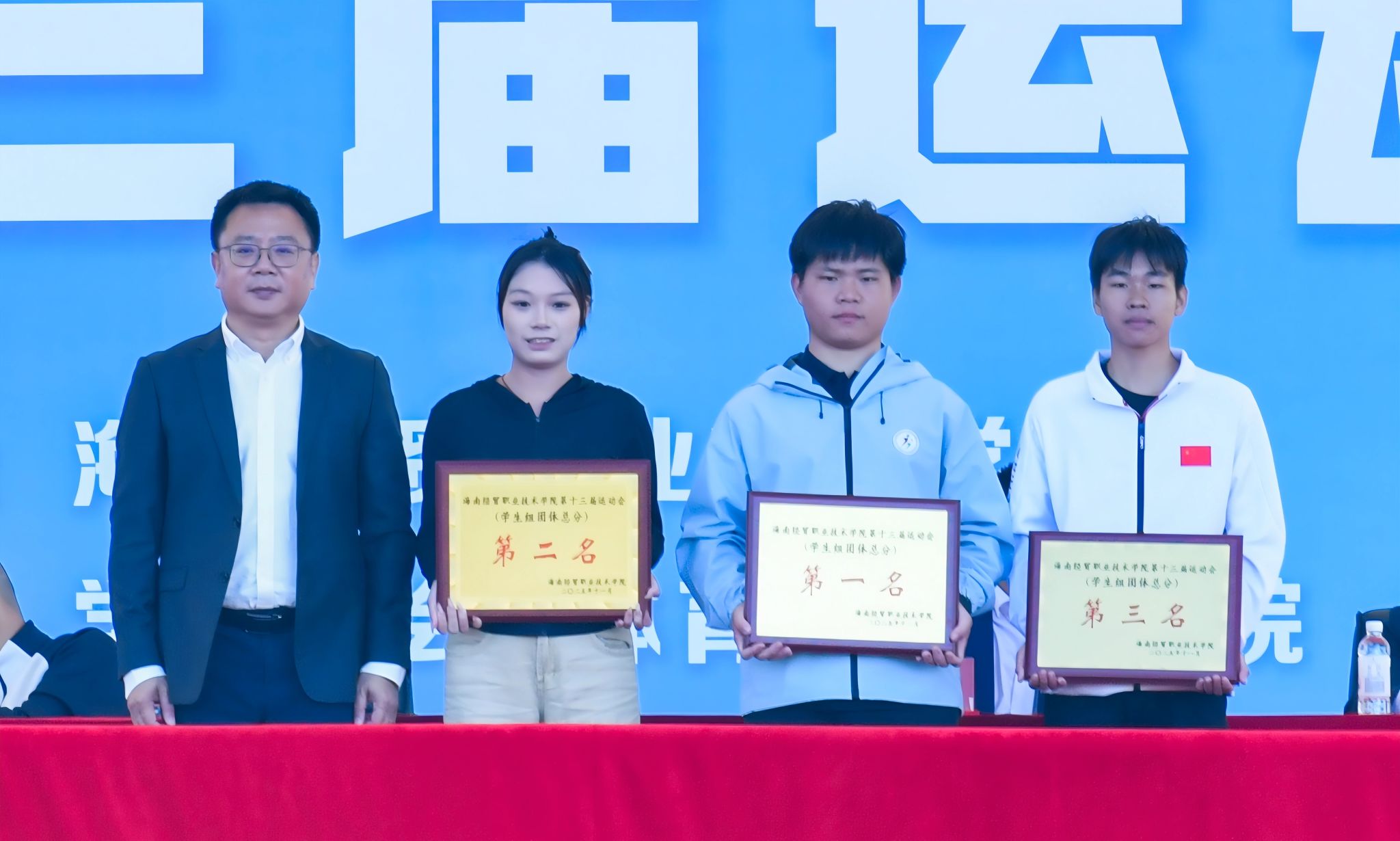 王华代表学校党委向所有在赛场上挑战自我、为集体争光的运动员们表示热烈祝贺,向公正执裁的裁判员、奔波忙碌的工作人员和默默奉献的志愿者们表示诚挚感谢。他说,冲刺时的全力以赴、协作时的默契信任、喝彩时的真诚热烈都在赛场上凝结成海经贸师生最鲜明的精神印记。他深情勉励全校师生,一是希望同学们把赛场上的这股“拼劲儿”带到学习和课堂中,把“不服输、争一流”的劲头,变成攻克难题、钻研技能的动力;老师们把拼搏向上、公平竞争的精神融入日常育人,培养专业过硬、品格优良的高技能人才。二是把运动中养成的“健康习惯”坚持下去,提高对健康的重视,养成自律的习惯,让健康体魄和阳光心态成为每一个海经贸人的核心竞争力。三是把赛场上的“团结协作”精神,凝聚成学校发展的强大合力,于学校发展的“关键大考”之际,亮出过硬教风、扎实学风、昂扬校风,不负众望所托,全力冲刺、圆满收官。