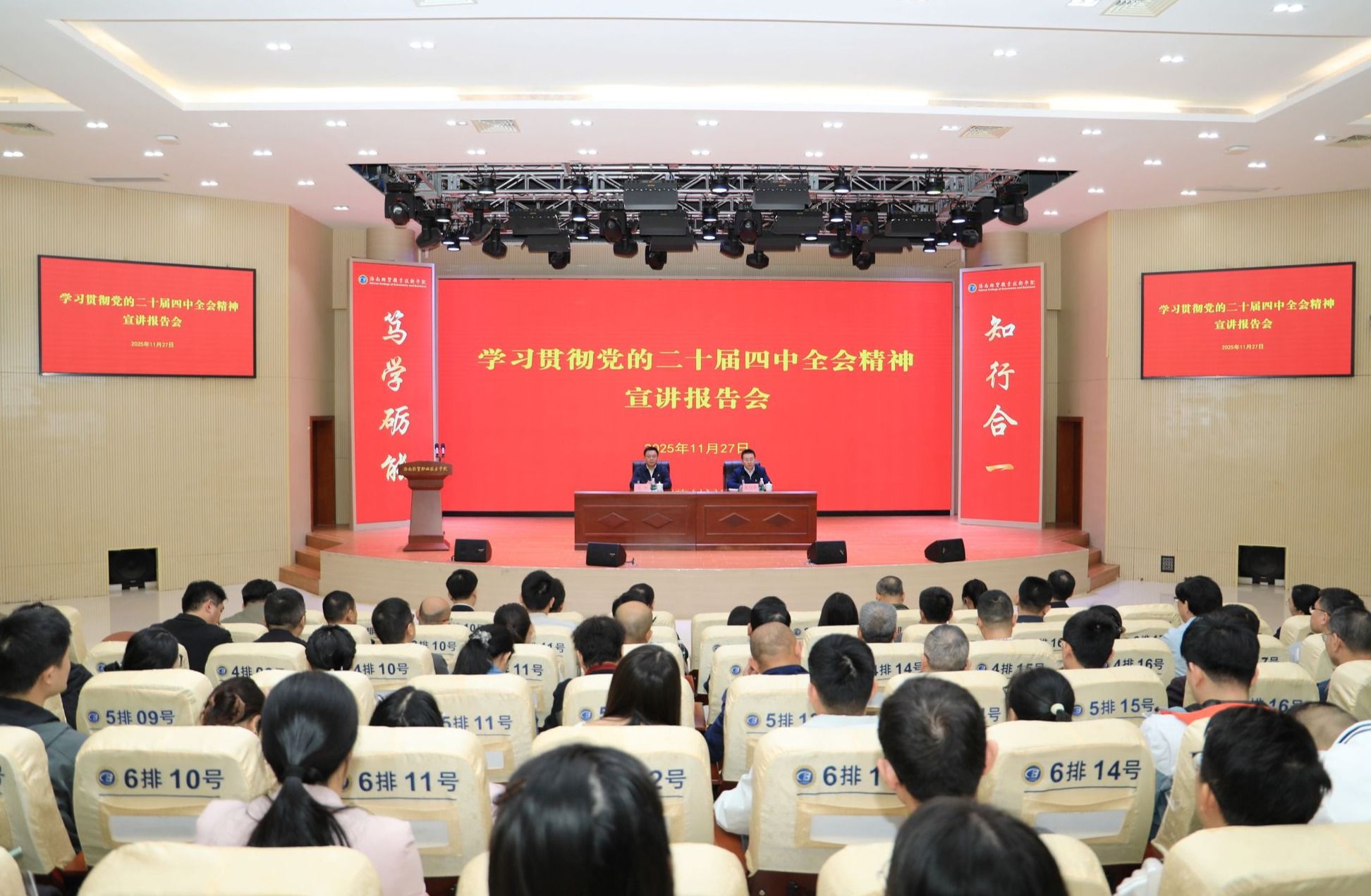 2025年11月27日,学习贯彻党的二十届四中全会精神宣讲团成员、kaiyun登录中国入口登录党委书记王华为师生宣讲党的二十届四中全会精神,要求全校党员干部和广大师生深入学习领会、全面准确把握全会精神的重大意义和核心要义,把智慧和力量凝聚到落实全会确定的各项目标任务和推动学校高质量发展上来。学校党委副书记、校长崔昌华主持会议。