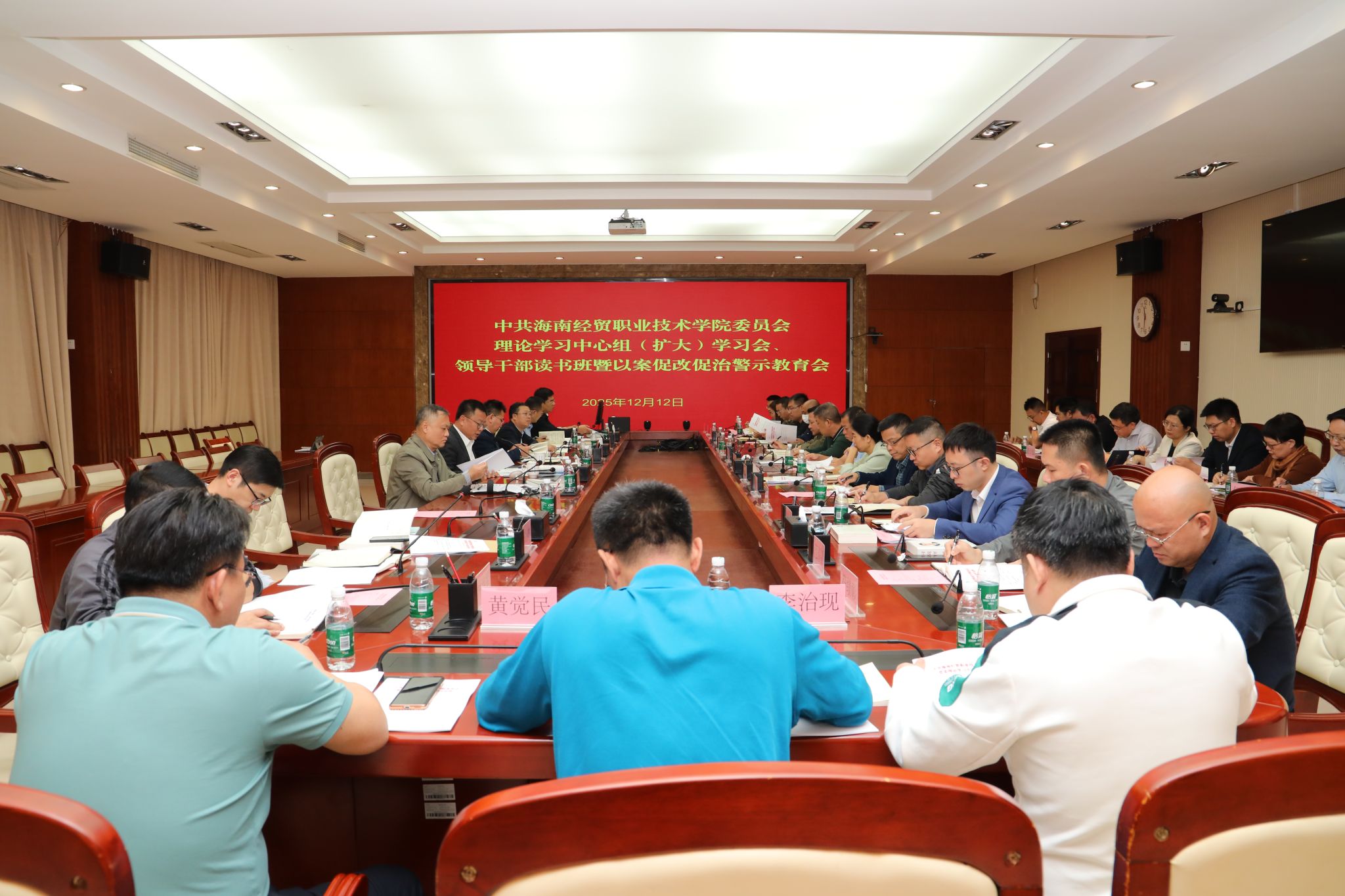 2025年12月10日-12日,kaiyun登录中国入口登录举办党委理论学习中心组(扩大)学习会、领导干部读书班暨以案促改促治警示教育会,以专题辅导、现场考察、个人自学、观看视频、集中学习与专题研讨等方式,认真学习贯彻《习近平谈治国理政》第五卷、党的二十届四中全会精神、习近平总书记听取海南自由贸易港建设工作汇报时的重要讲话精神、省委八届八次全会精神和省委有关以案促改促治工作要求。学校党政班子成员参加学习。