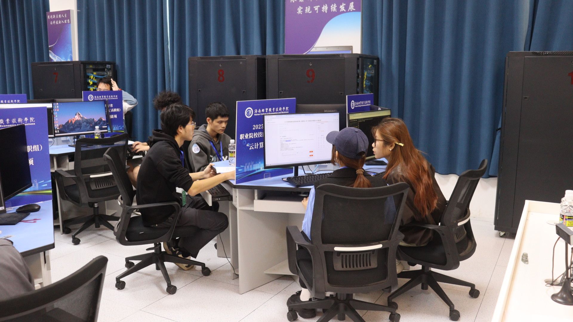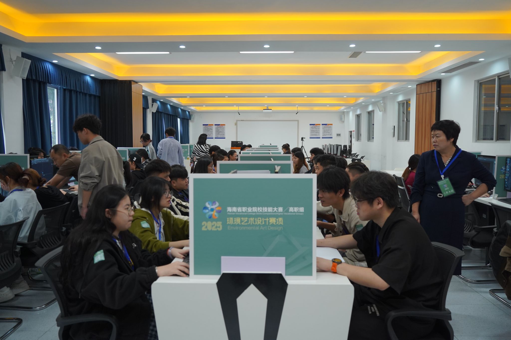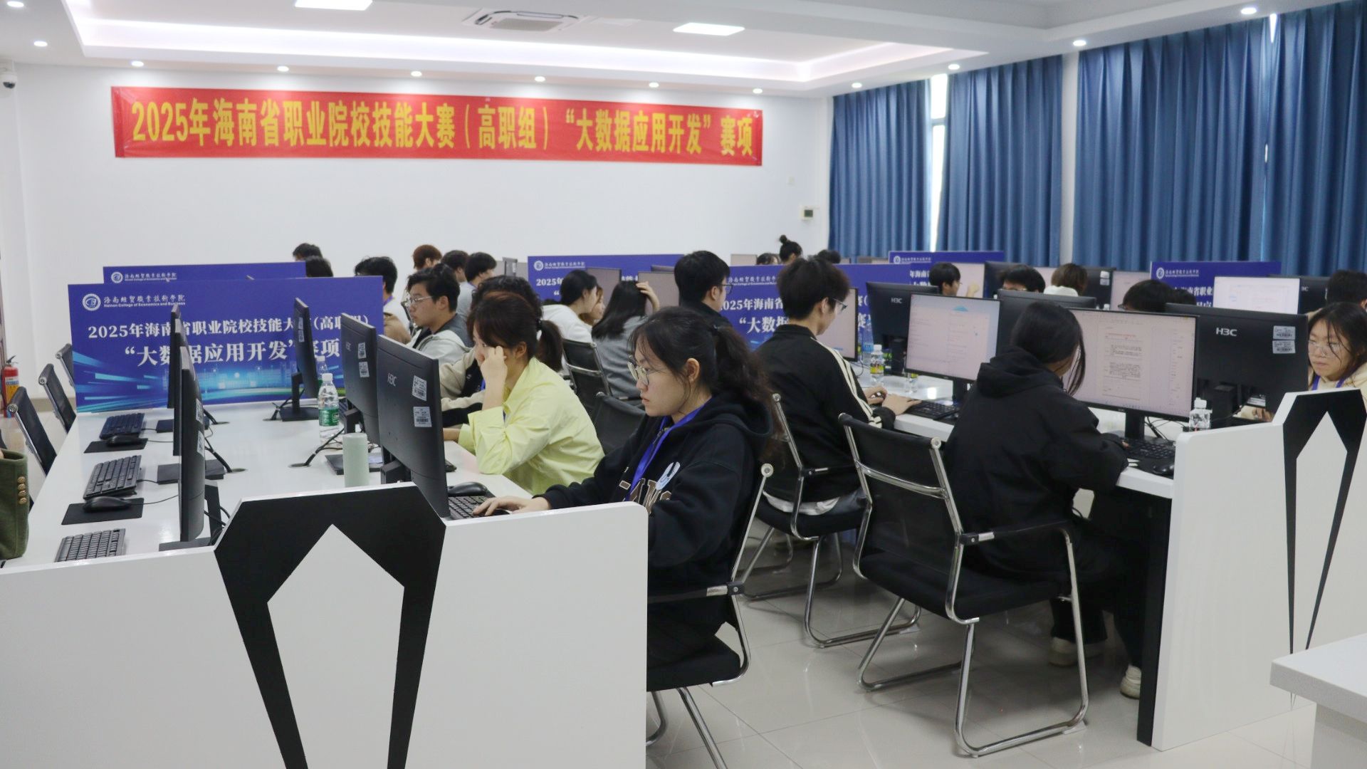 比赛现场亮点纷呈:智能网联汽车技术赛项中,选手们通过团队合作,熟练完成智能传感器的安装、标定与测试内容;大数据应用开发赛项的选手们高效完成平台搭建、数据处理与可视化任务,在高强度竞技中尽显专业功底与职业素养;在会计实务赛项中,选手们深耕数智化财务应用领域,出色完成业财信息化、财务数字化两大板块业务处理,展现新时代财务技能新风貌;互联网+国际经济与贸易赛项比赛现场,选手们模拟传统外贸企业在互联网场景下的获客逻辑与实操流程,精准核算每笔业务成本,实现利润最大化;酒店服务赛项内容覆盖住宿业、娱乐业、商业服务业等旅游全产业链关键领域,从技能水平、职业素养、应用价值、团队合作、创新创意等多个维度对选手进行综合考查;环境艺术设计赛项的选手们专注设计、精雕细琢,通过创意构思与软件操作,将空间理念转化为完整方案,展现了扎实的专业功底与灵活的实践能力……各赛项选手以饱满的热情、精湛的技能、默契的协作,在竞技中交流提升,在比拼中锤炼本领。
