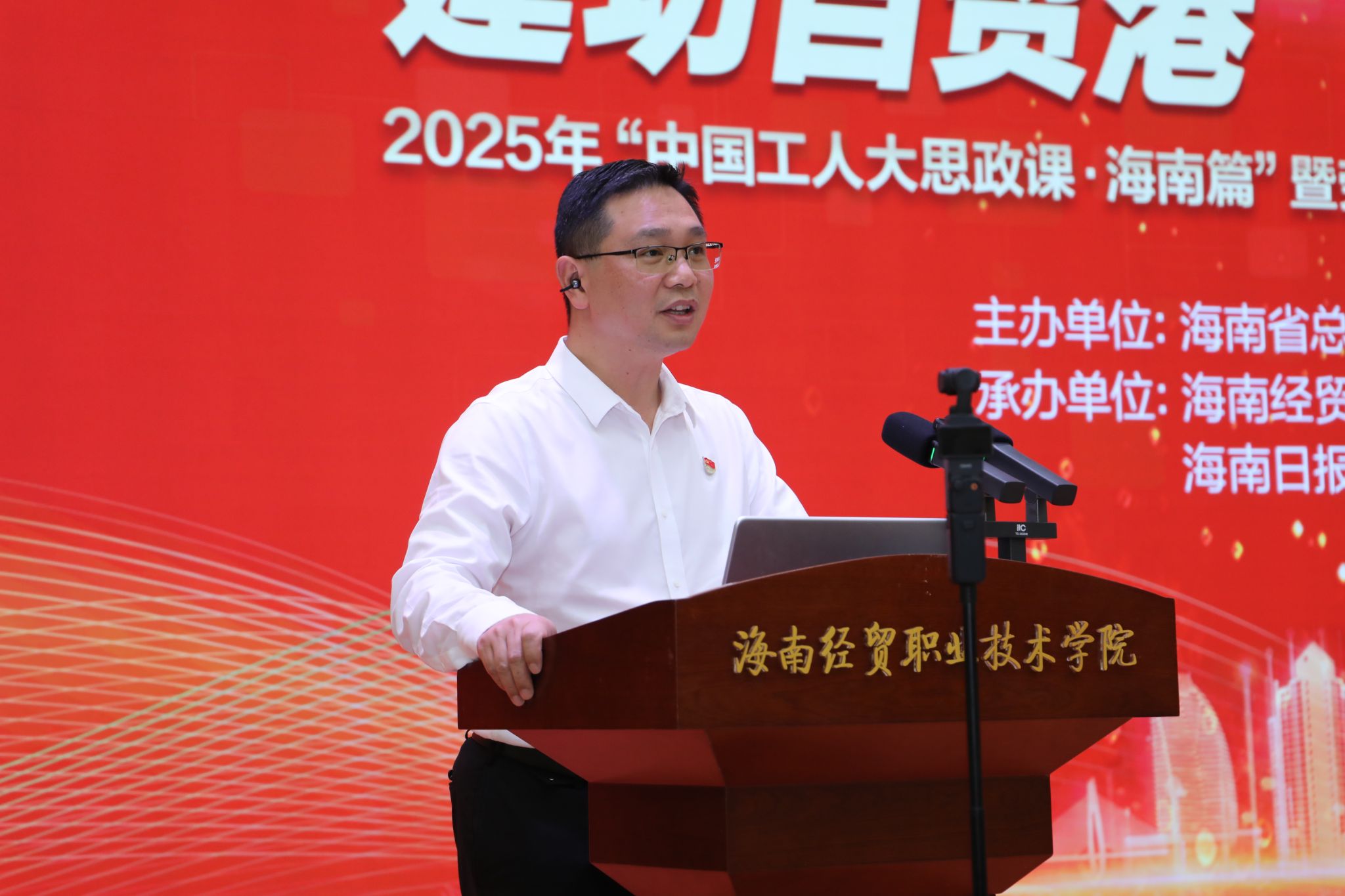 12月17日,“建功自贸港 劳动筑梦想”2025年“中国工人大思政课·海南篇”暨劳模工匠进校园宣讲活动走进kaiyun登录中国入口登录。全国劳动模范、海航航空技术有限公司副总裁易从涛,海南省劳动模范、海南吉羽物业服务有限公司副总经理冯发姑受邀进行宣讲,为海经贸学子树立了可感可学、可亲可敬的榜样标杆。学校党委委员、副校长张修志到场聆听宣讲。