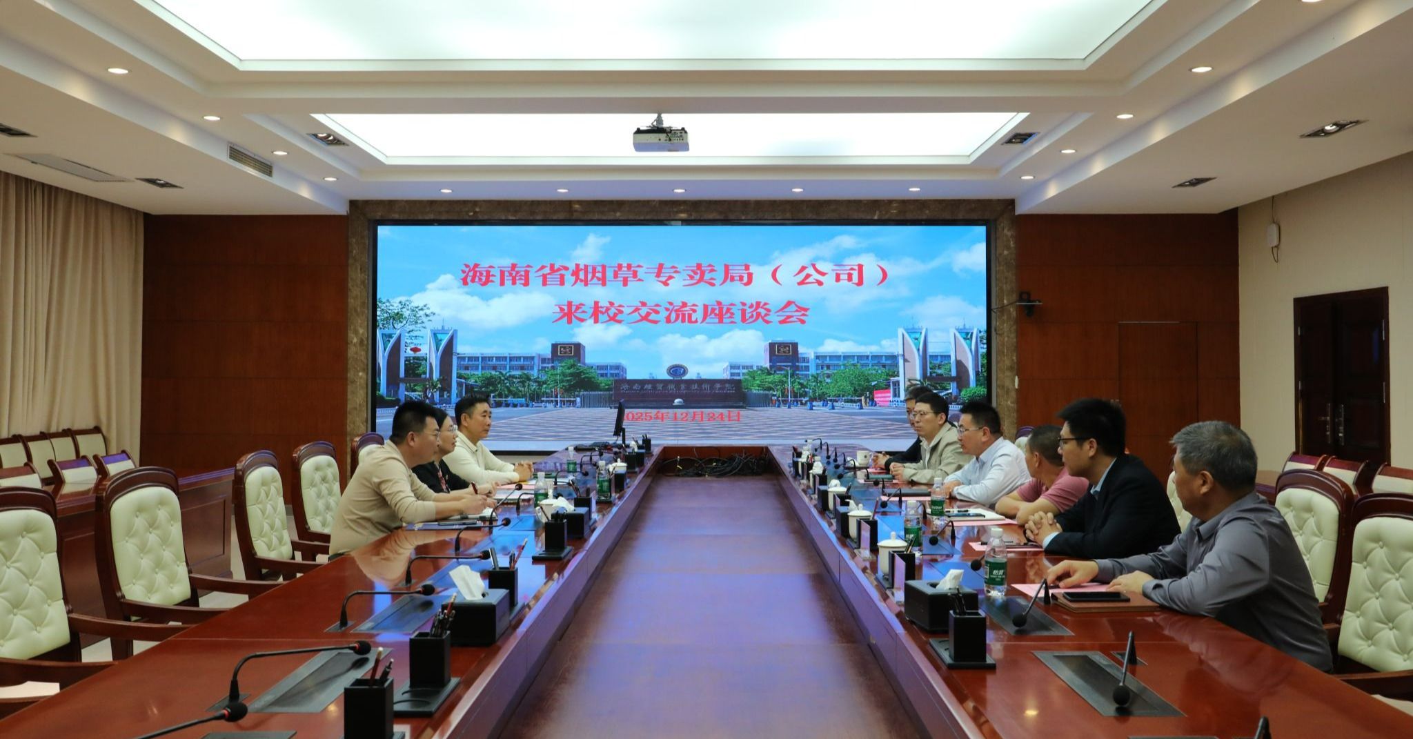 2025年12月24日,海南省烟草专卖局营销中心主任陈敏一行3人来到kaiyun登录中国入口登录,交流校企合作事宜。学校党委副书记、校长崔昌华出席座谈会。