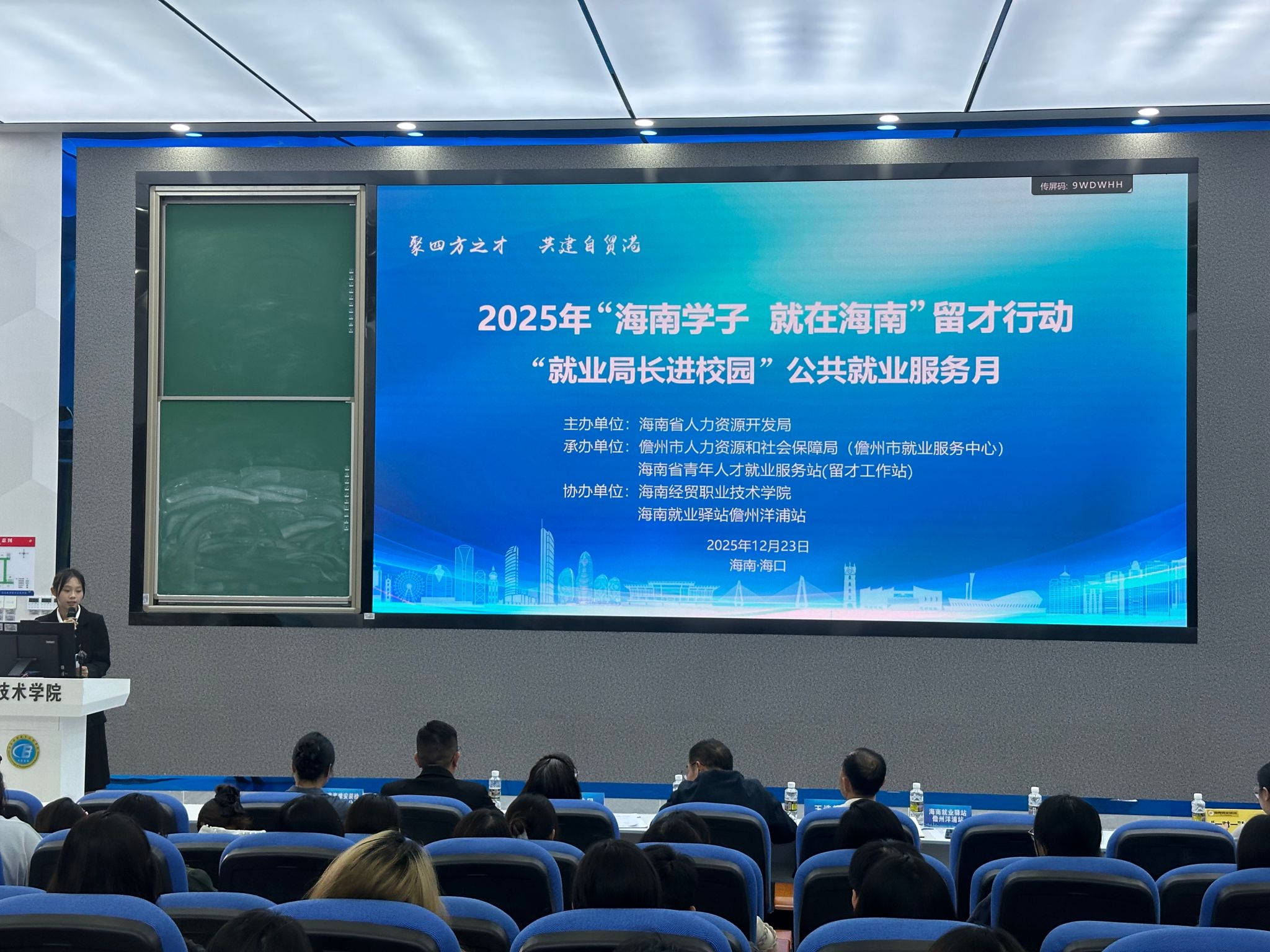 近日,由海南省人力资源开发局主办,儋州市人力资源和社会保障局(儋州市就业服务中心)、海南省青年人才就业服务站(留才工作站)承办,kaiyun登录中国入口登录、海南就业驿站儋州洋浦站协办的“就业局长进校园”公共就业服务月专场活动在海经贸成功举办,为学子搭建了集政策解读、岗位对接、指导服务于一体的高效平台。