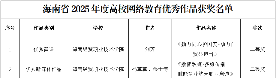 海经贸师生在海南省2025年度大学生网络文化节和高校网络教育优秀作品推选展示活动中喜获佳绩