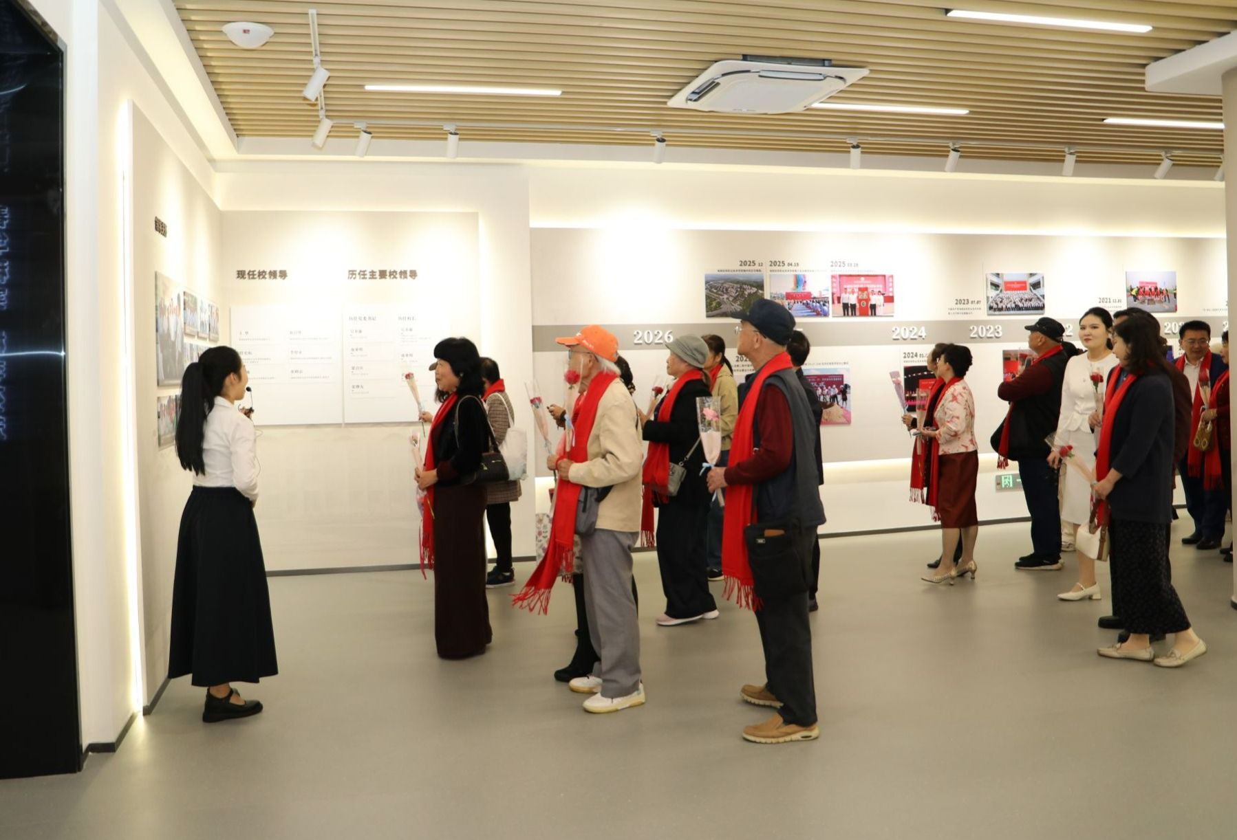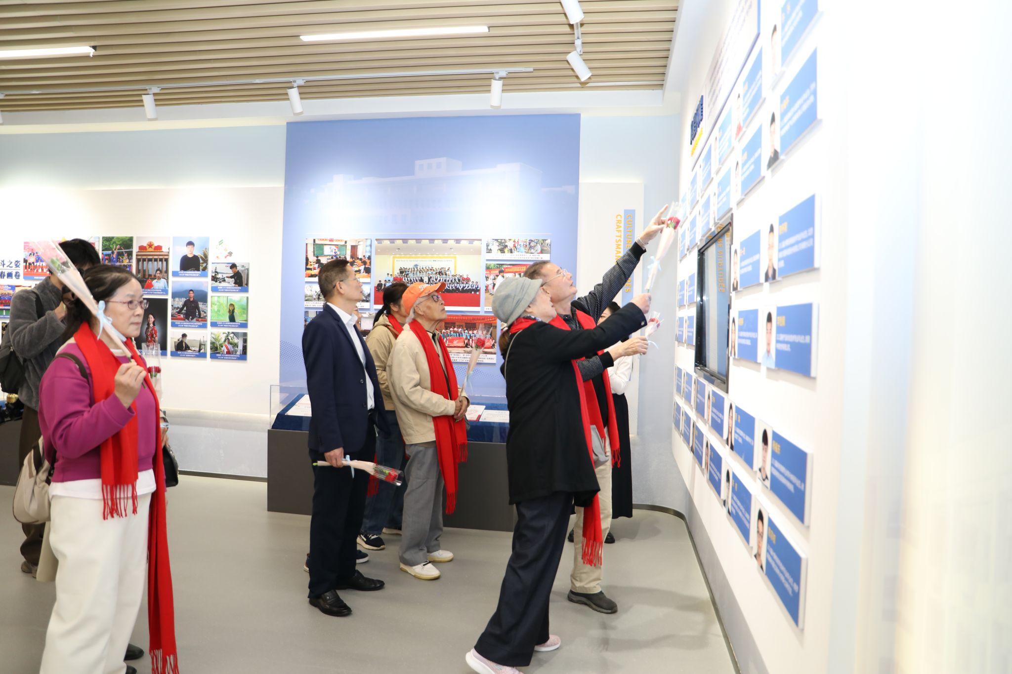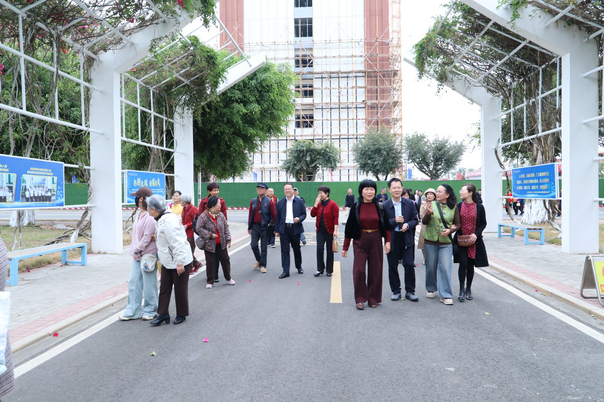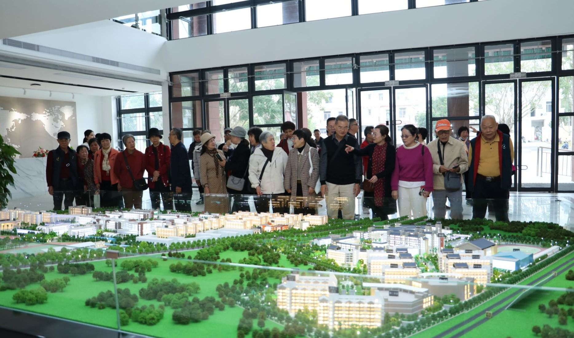 退休老同志们还来到国际教育中心,通过沙盘了解校园建设新貌、儋州校区规划与未来发展蓝图。在校史展览馆,于一张张老照片、一件件实物展品前驻足流连。从学校的初创历程到如今的蓬勃发展,从雏形初现的办学规模到高瞻远瞩的未来规划,老同志们不时低声交谈、点头赞许,眼中满是欣慰与自豪,在光影流转间重温了自己与学校共成长的难忘岁月。