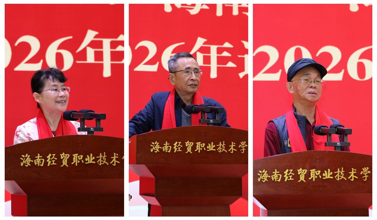 “50”“60”“70”后退休教职工代表张春玲、周国耀、林长武依次发言。他们深情回忆在学校耕耘奋斗的峥嵘岁月,为学校发展取得的丰硕成果倍感欣慰与喜悦,对学校一如既往关怀退休老同志的暖心举措表达诚挚谢意,更对学校未来的建设发展蓝图满怀憧憬,并向接力建设海经贸的青年教师们寄予殷切期望与美好期许。一句句发自肺腑的心声、一声声饱含真情的感慨,为这场暖意融融的团拜会,勾勒出最动人的底色。