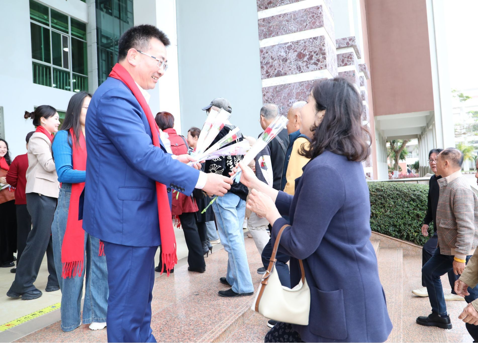 学校党委书记王华,党委副书记、校长崔昌华等班子成员为老同志们送上鲜花,工作人员为老同志们系上喜庆的红色围巾,现场暖意融融、喜气洋洋。在图书馆报告厅,大家共同观看了学校宣传片,一幕幕鲜活的画面全面展现了学校近年来在教学科研、校园建设、人才培养等方面取得的丰硕成果,让老同志们深切感受到学校日新月异的发展变化。