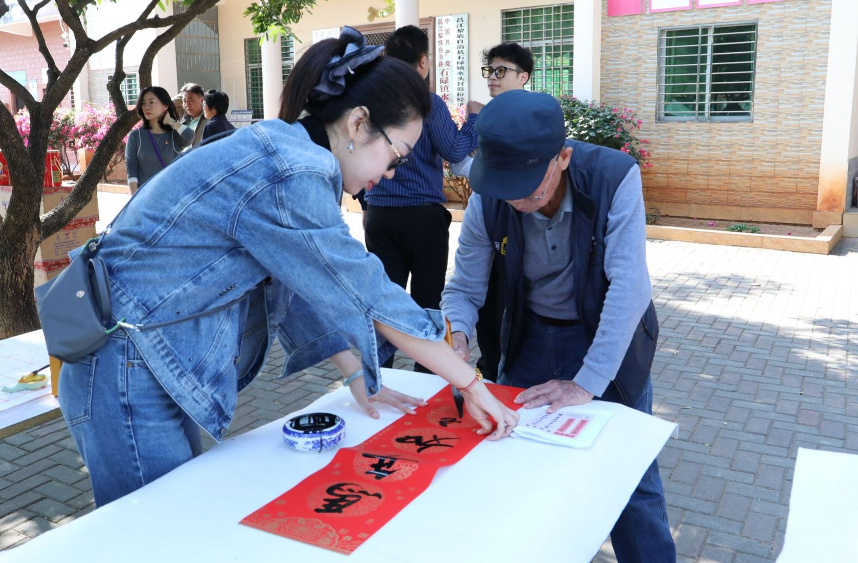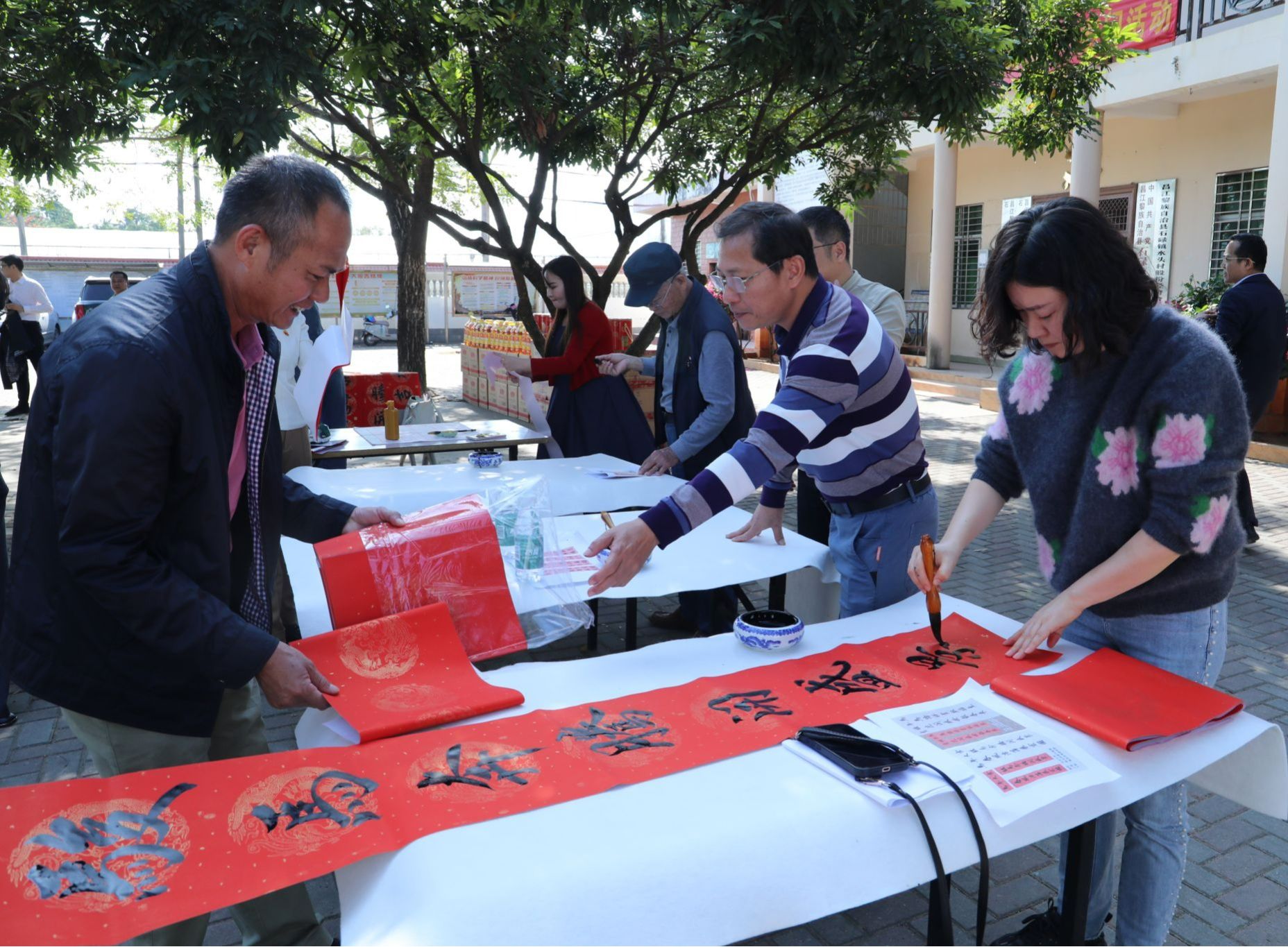 学校教师为村民们写春联