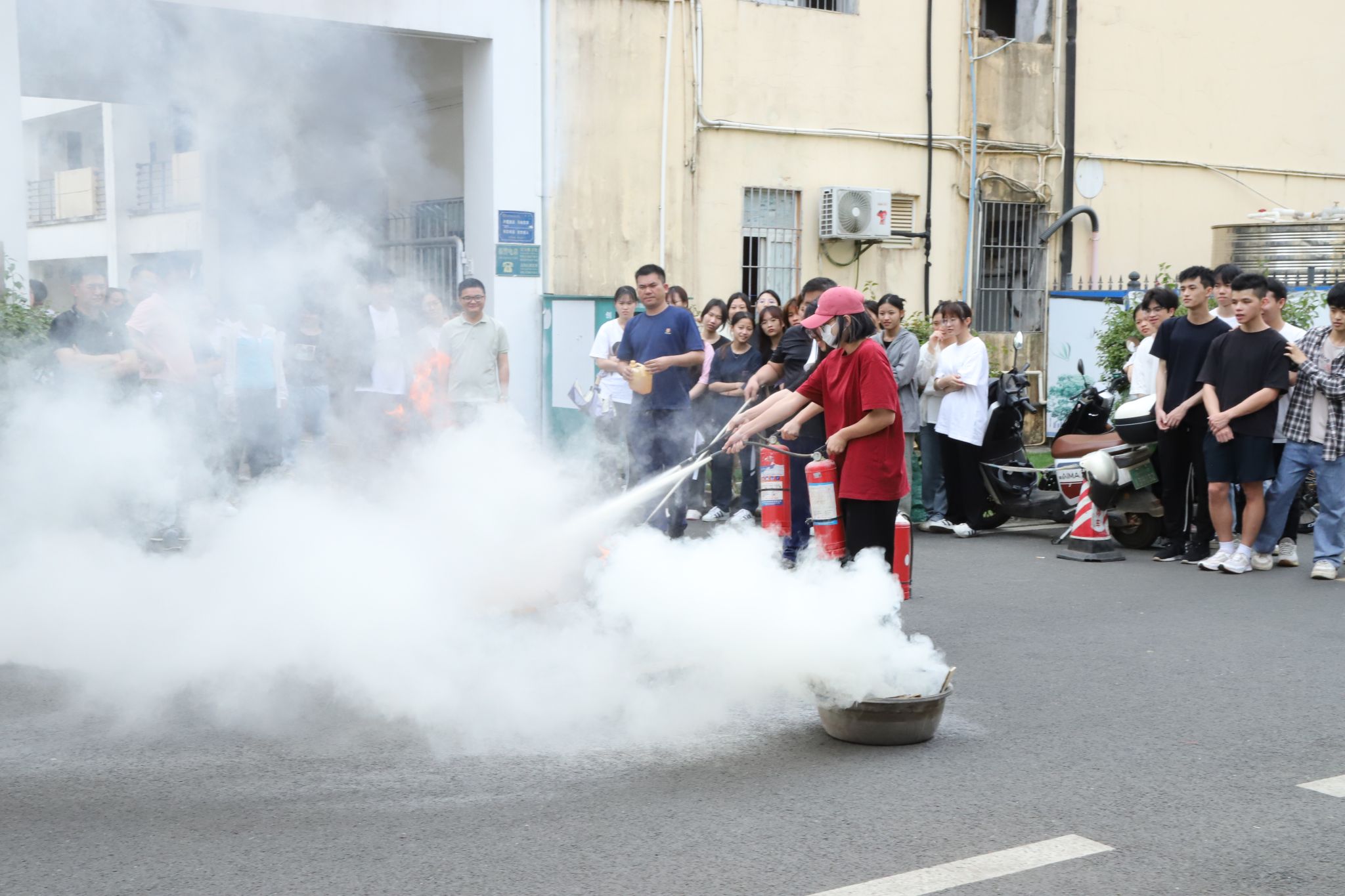 学生进行灭火实操