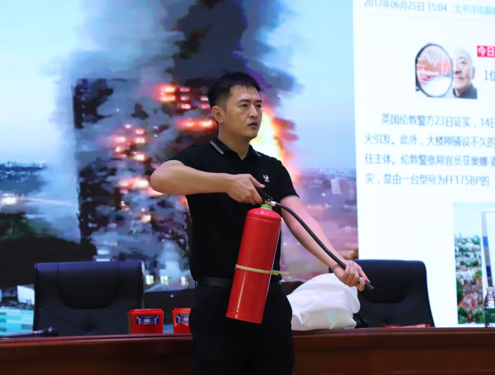 应急宣传教员符俊生进行消防知识培训