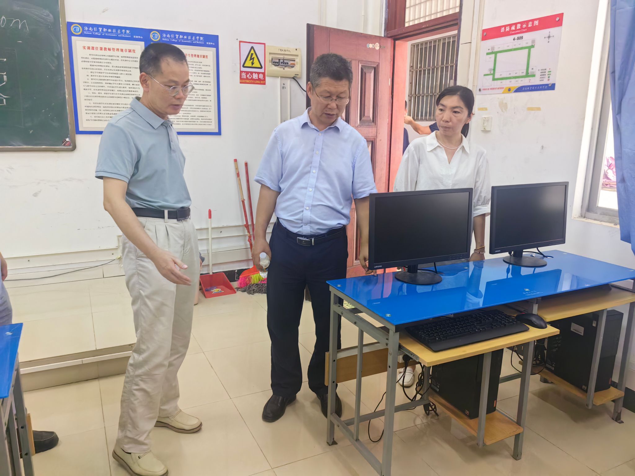 学校党委副书记、院长崔昌华,党委委员、副院长陈修焕,党委委员、副院长刘文斌,党委委员田小林、方天海分别带领有关部门负责人,对校园安全工作进行督导检查。校领导们分别来到实训楼、教学楼、图书馆、体育馆、学生宿舍、教职工宿舍、食堂等学习工作生活场所,对发现的问题进行指导并要求整改,强调各部门各单位负责人、各楼房馆所区域负责人要严格落实安全生产第一责任人责任,切实做好防火防灾工作,有效防范和及时整改消防安全、食品卫生安全等各类风险隐患,严格落实值班值守,为全校师生员工创造安全舒适的学习工作生活环境。