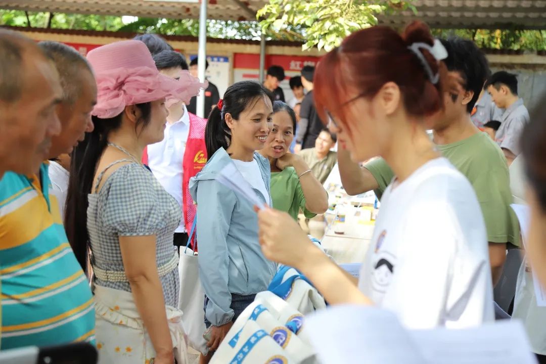 财务管理学院师生将准备好的《支持乡村振兴税费优惠政策指引》手册分发给村民朋友们。“农业服务免征增值税”“从事‘四业’的个人暂不征收个人所得税”,冯晨雨等同学以“科普讲解+趣味问答”的形式,向大家普及财税知识。村民们积极互动并领取奖品。