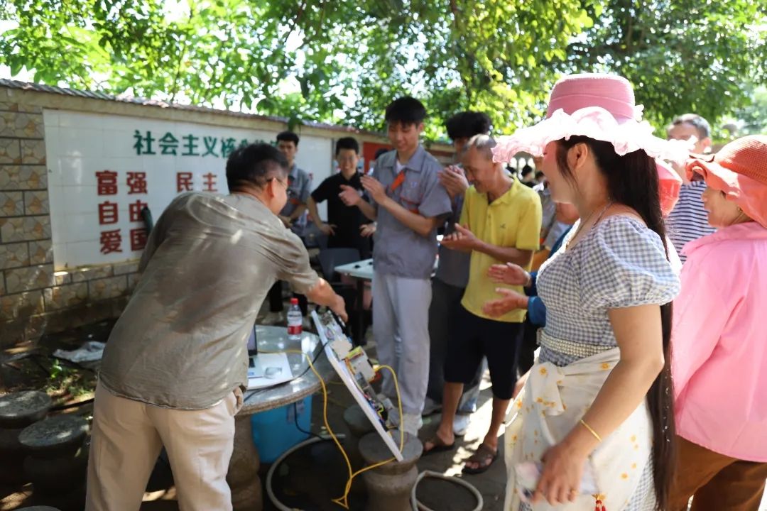 “我们运用PLC控制器结合机电技术,实现设备的自动喷淋。”机电与汽车工程学院陈明老师向村民们讲解说,掌握这项技术可以帮助大家解决一些农业生产上的问题,提高农业生产效率,降低劳动力成本,提高农业生产的自动化水平。同学们还向村民们展示了电工维修技术,帮助大家更好地了解安全用电相关知识。