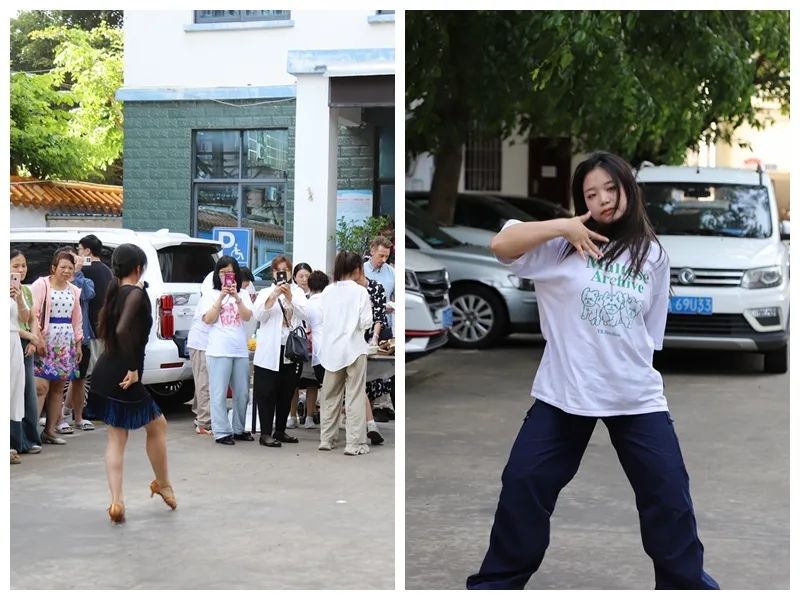 舞魂社团杨典、王彦淑等五位才华横溢的同学带来的爵士舞、拉丁舞表演作为暖场活动闪亮登场,为观众带来了一场视觉与感官的盛宴,瞬间点燃了现场的气氛。舞者们身着风格独特的服装,以曼妙的舞姿展现了舞蹈的自由、热情、奔放。居民们被她们的热情所感染,欢呼声此起彼伏,纷纷为海经贸学子的多才多艺点赞鼓掌。