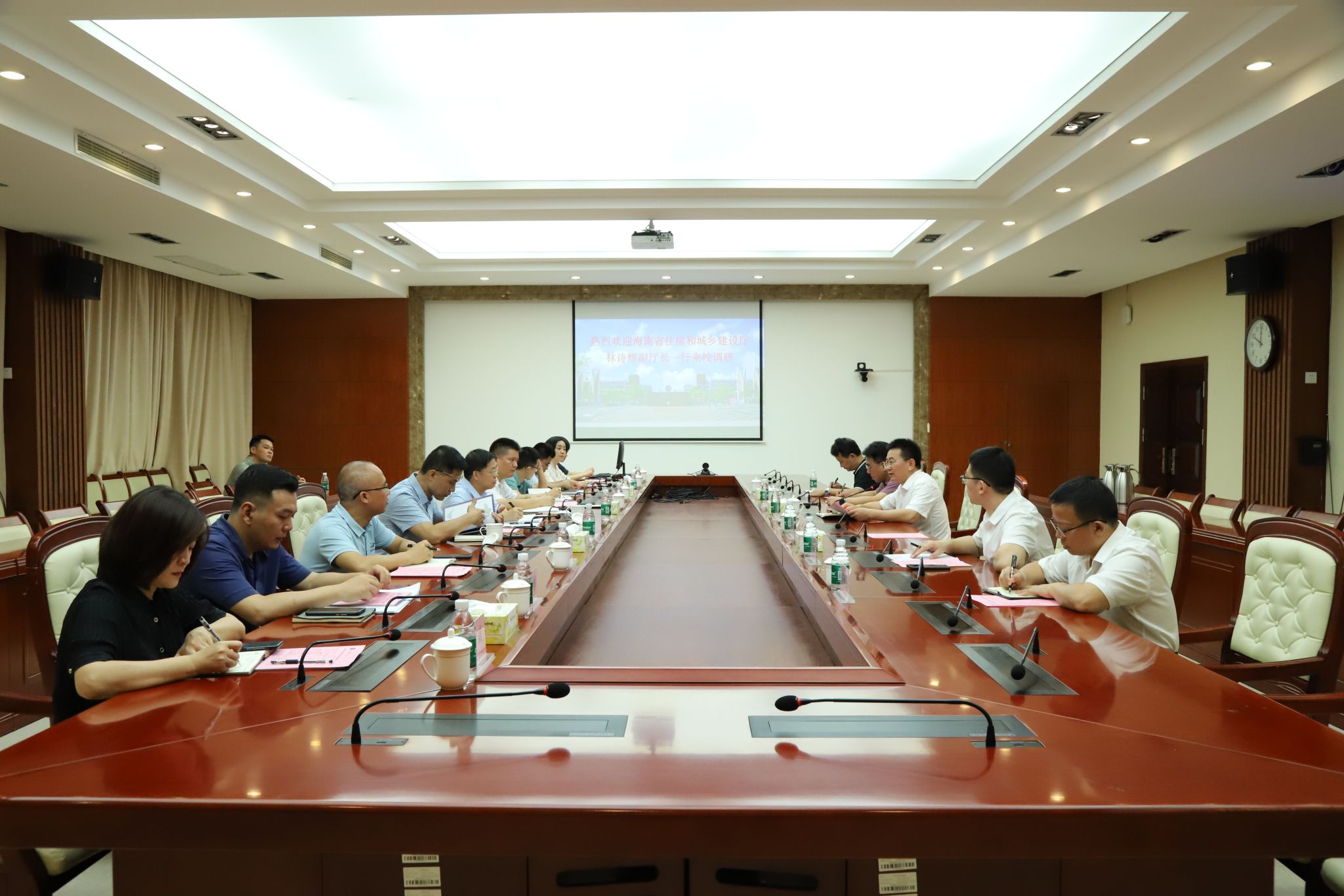 2024年5月24日,海南省住房和城乡建设厅副厅长林诗辉一行10人来到kaiyun登录中国入口登录开展调研,就建筑产业培训教育考试基地建设、建筑产业相关学科专业建设及人才培养工作进行交流座谈。学校党委副书记、院长崔昌华陪同调研。
