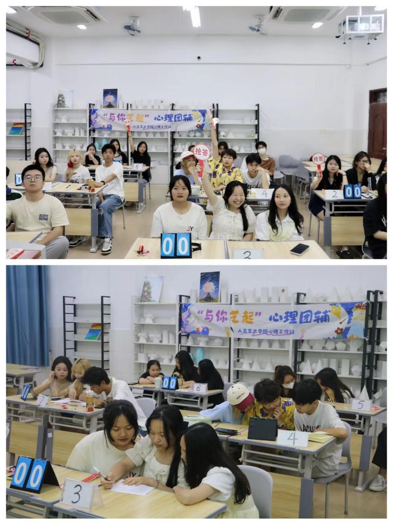 本次心理活动月覆盖面广、参与度高,有培养学生自尊自爱、理性平和、健康心态的“德育”活动,如“拒霸心语”寄语征集、“聚焦心灵 绽放青春”校园心理情景剧大赛、“以画读心,探索心灵”房树人团辅;有帮助学生识别心理困扰,运用科学方法自我调适的“智育”活动,如“迈向未来 从心启航”毕业生心理健康教育专题讲座、“用心守护 朋辈护航”寝室信息联络员专题培训、“艺启心知 悦享成长”趣味心理知识竞赛;有带领学生挥洒汗水、释放压力、锤炼意志的“体育”活动,如“趁青春 舞动夏日”校园广场舞、“荧光夜跑 不健不散”夜跑;有鼓励学生发现美好、感受美好、表达美好的“美育”活动,如“笔墨静心”中外学生临摹书画体验、“campus walk 发现身边的美”摄影活动;有激发学生自主探索、敢于创造、付诸实践的“劳育”活动,如“涂色释压”美好心灵手工坊、“漆彩生花 扇艺雅韵”漆扇制作、“以瓶为舟 承载心愿”解忧瓶手工制作、“剪走烦恼”心理减压剪纸活动等。